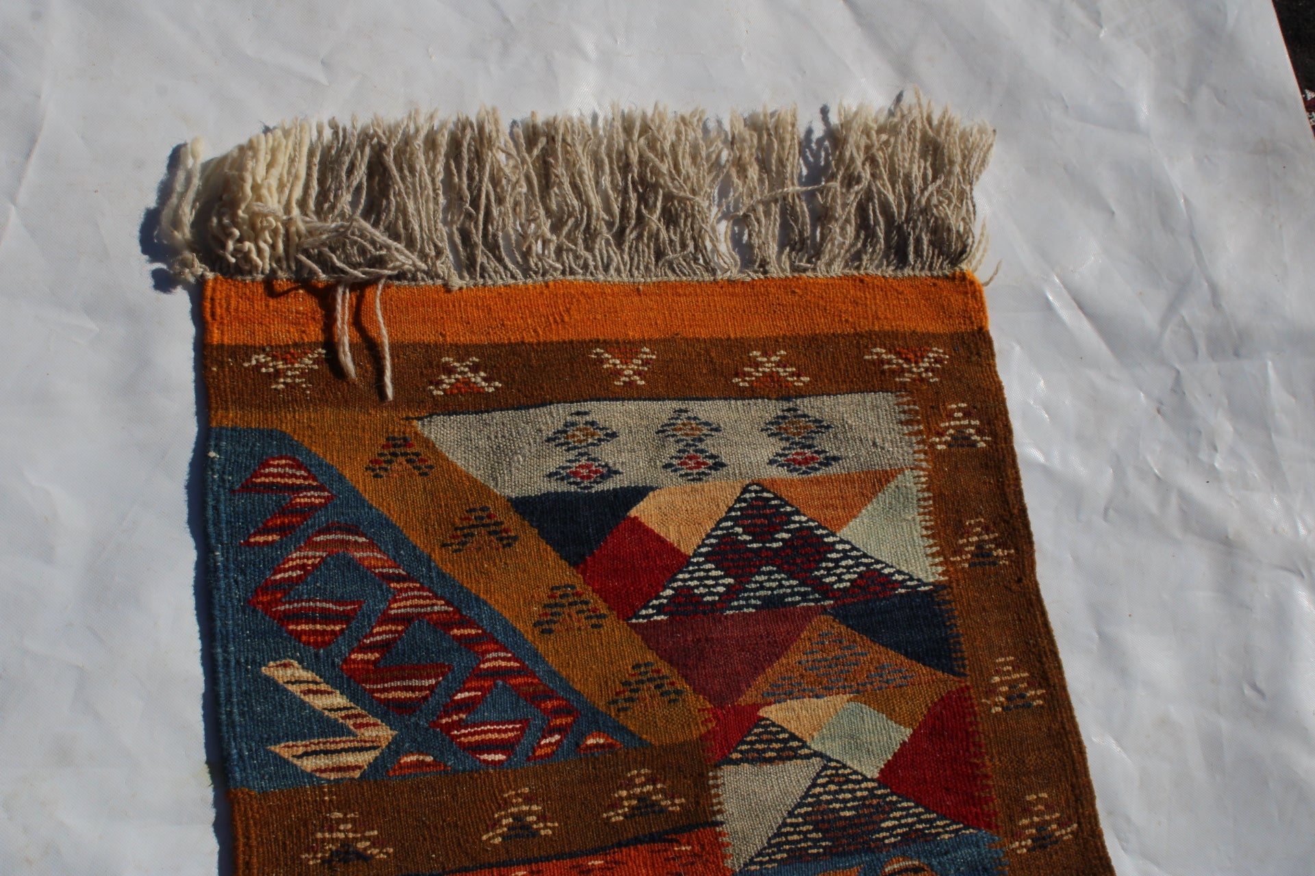 Authentic Moroccan Berber Kilim Rug Picasso Taznakht T63. Handmade tribal rug, expertly woven with traditional craftsmanship 120x060 cm