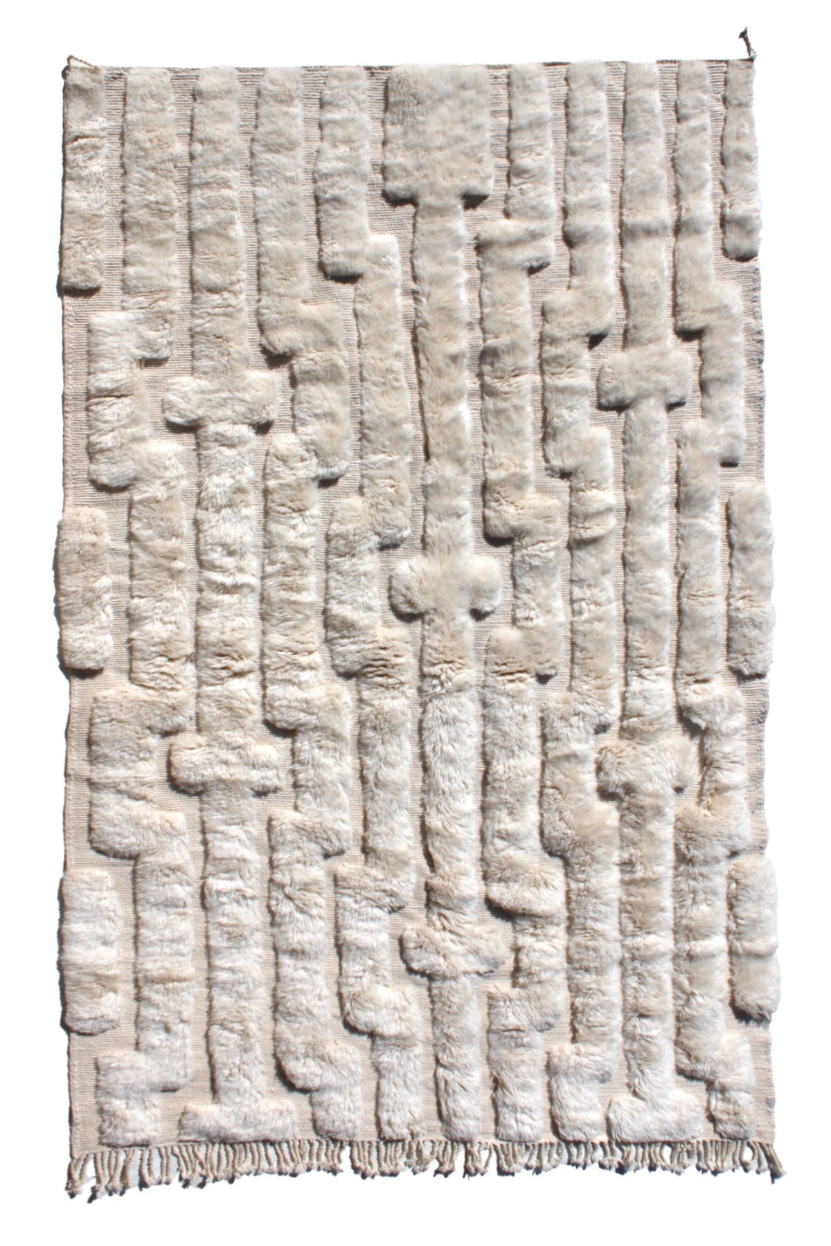 Our knotted weave rugs are handcrafted, with each knot tied by hand. These rugs are luxurious, inviting, and incredibly soft to the touch. Our standard pile measures approximately 1.25", while the low pile averages .75". Flip over any Adrar rug, and you’ll see how closely each wool knot is tied, a testament to the meticulous craftsmanship. The result is a lush, velvety field of soft wool, enhanced by our exclusive washing process at our coop in Imlil.