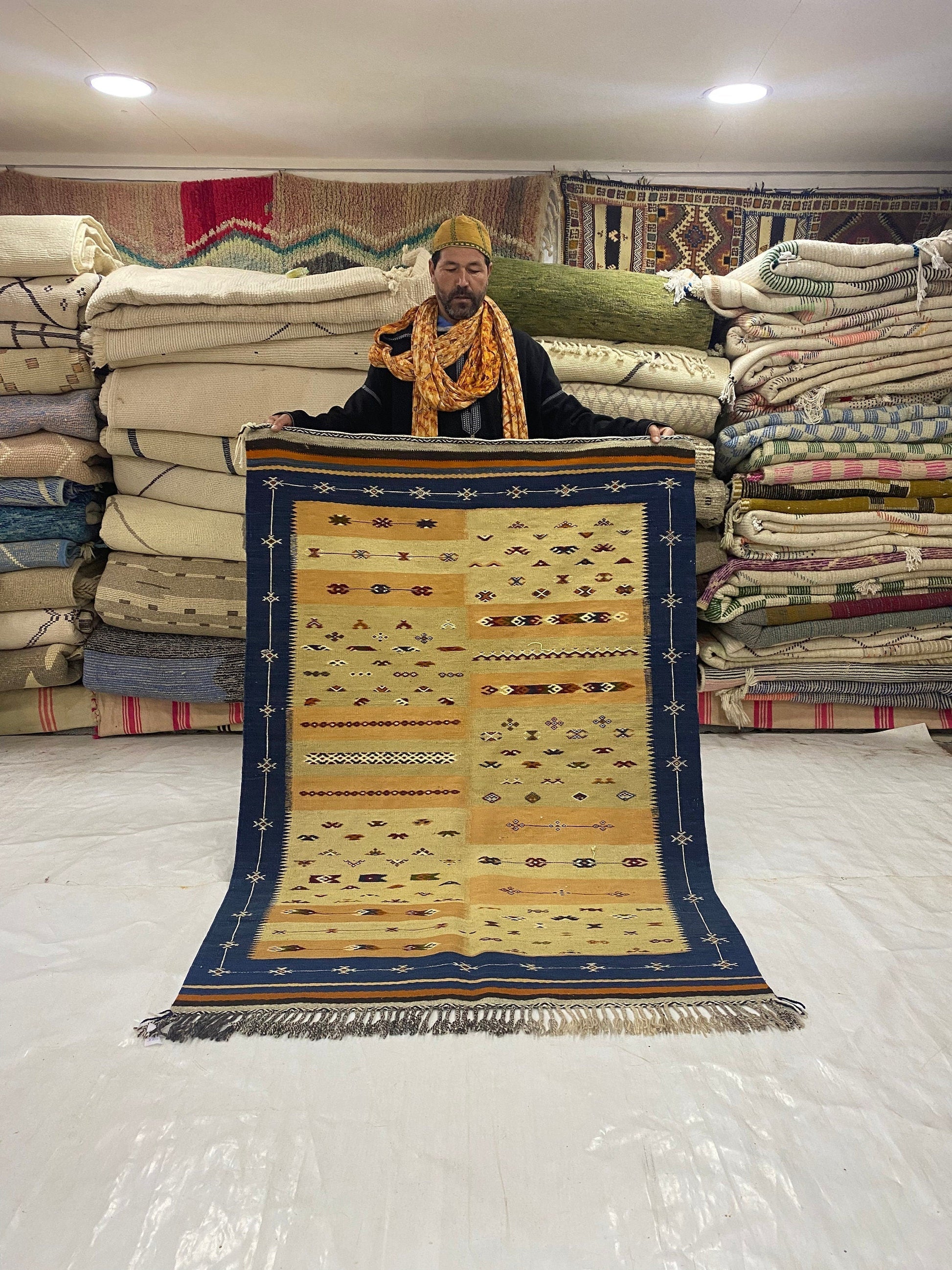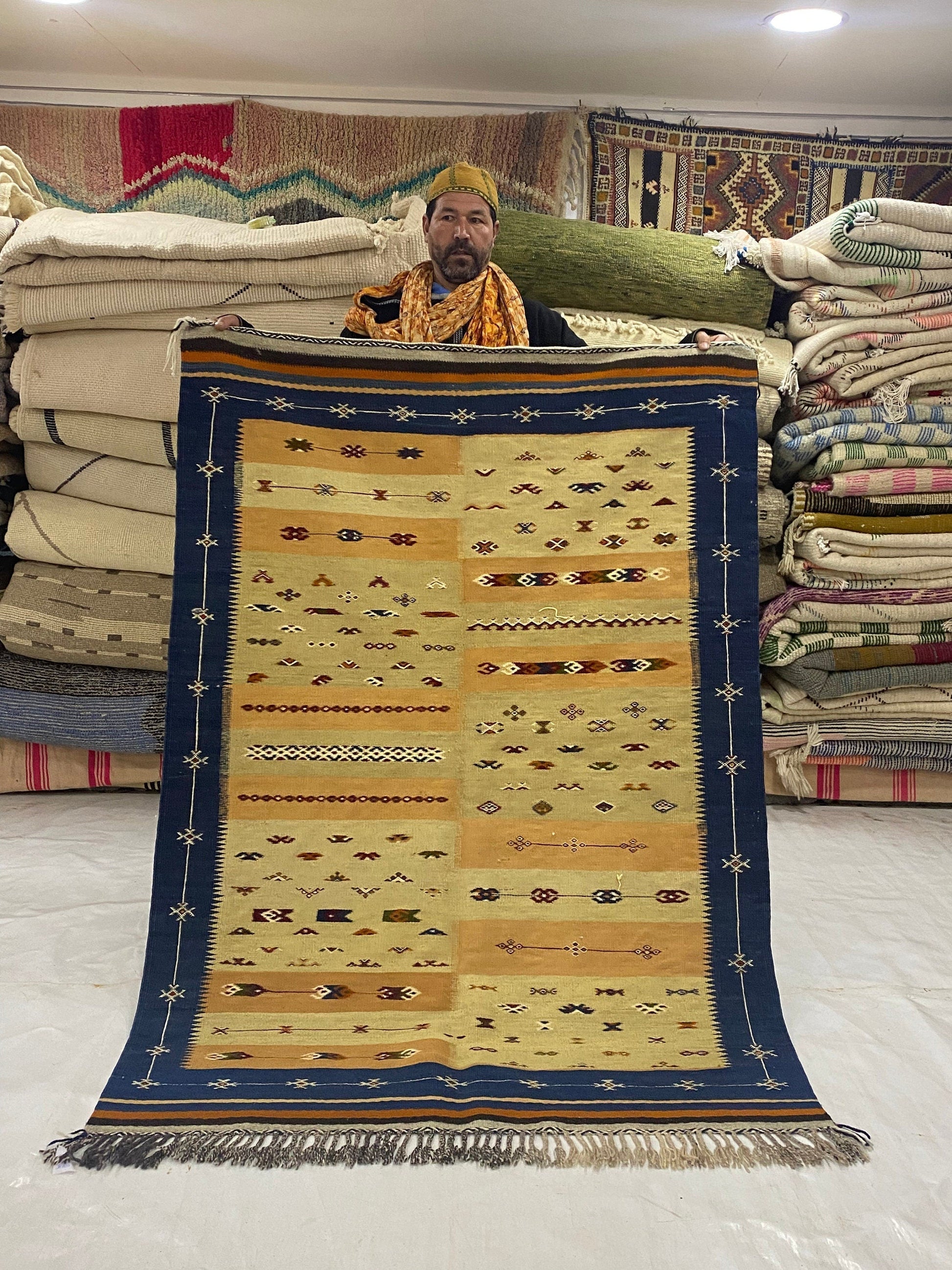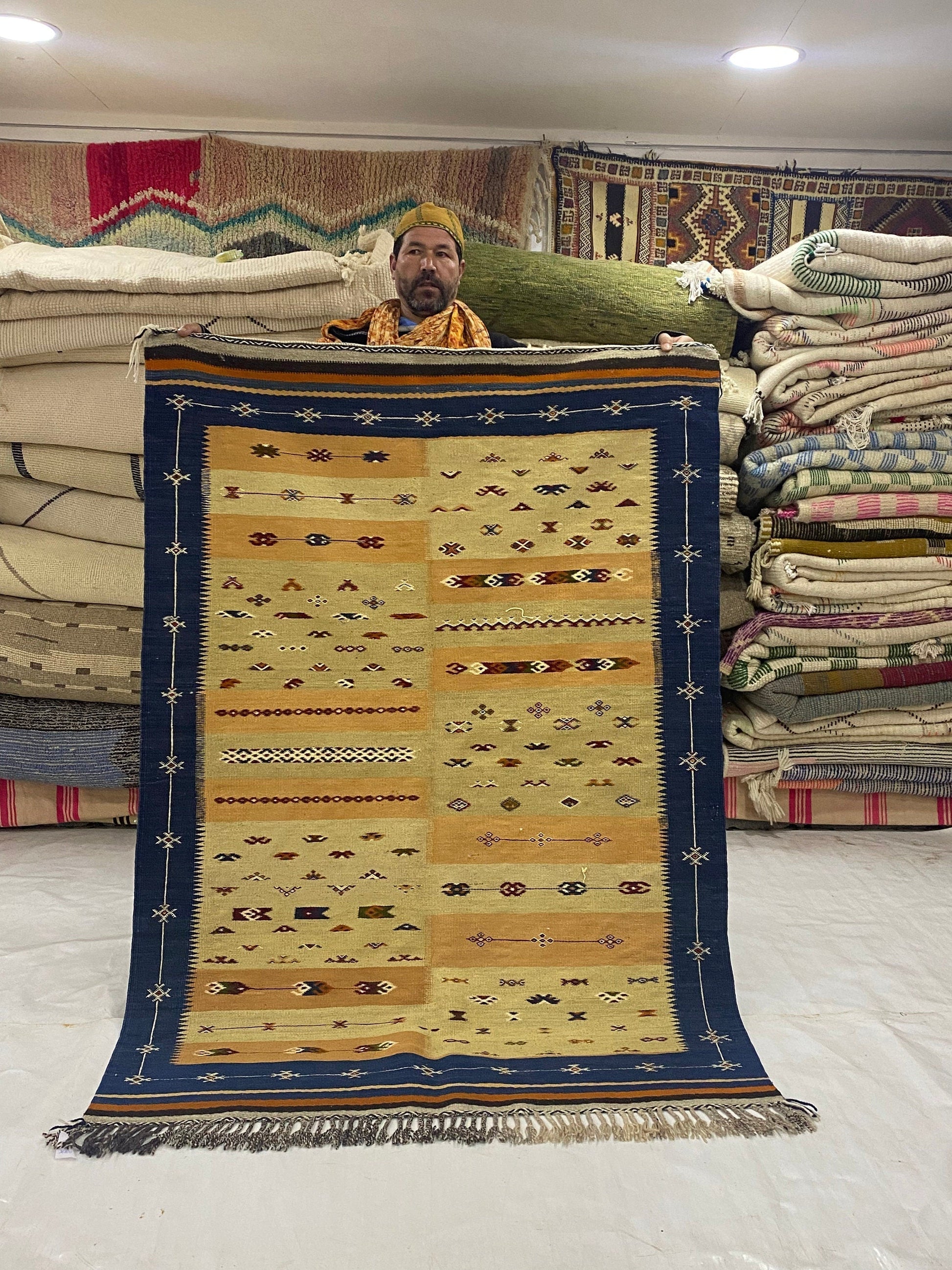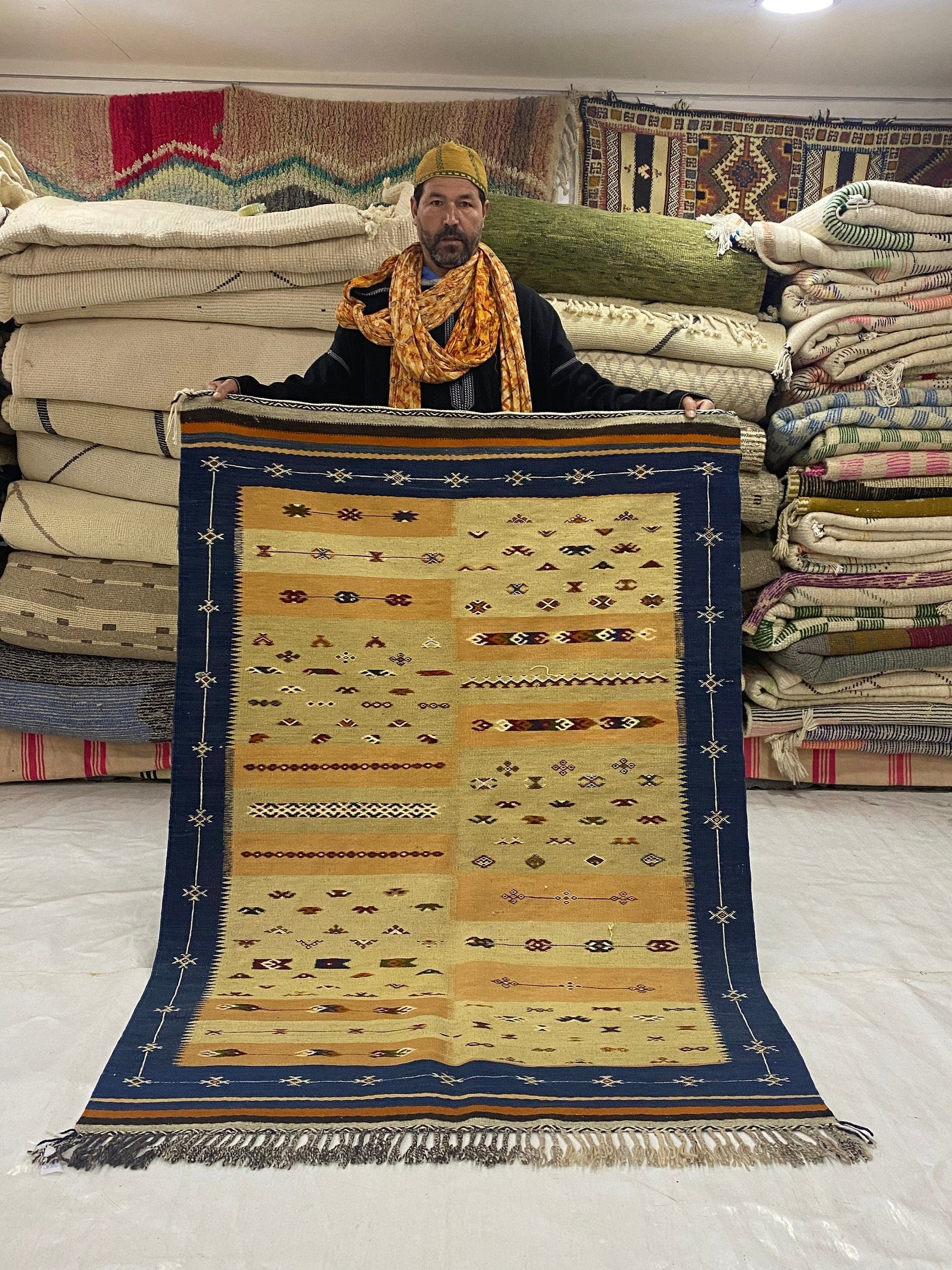This from a village in atlas called Moddat it’s only this village who is woven this quilt family works together all year just to make one carpet it’s not easy You can have a look around. You are not going to see something like this often.
