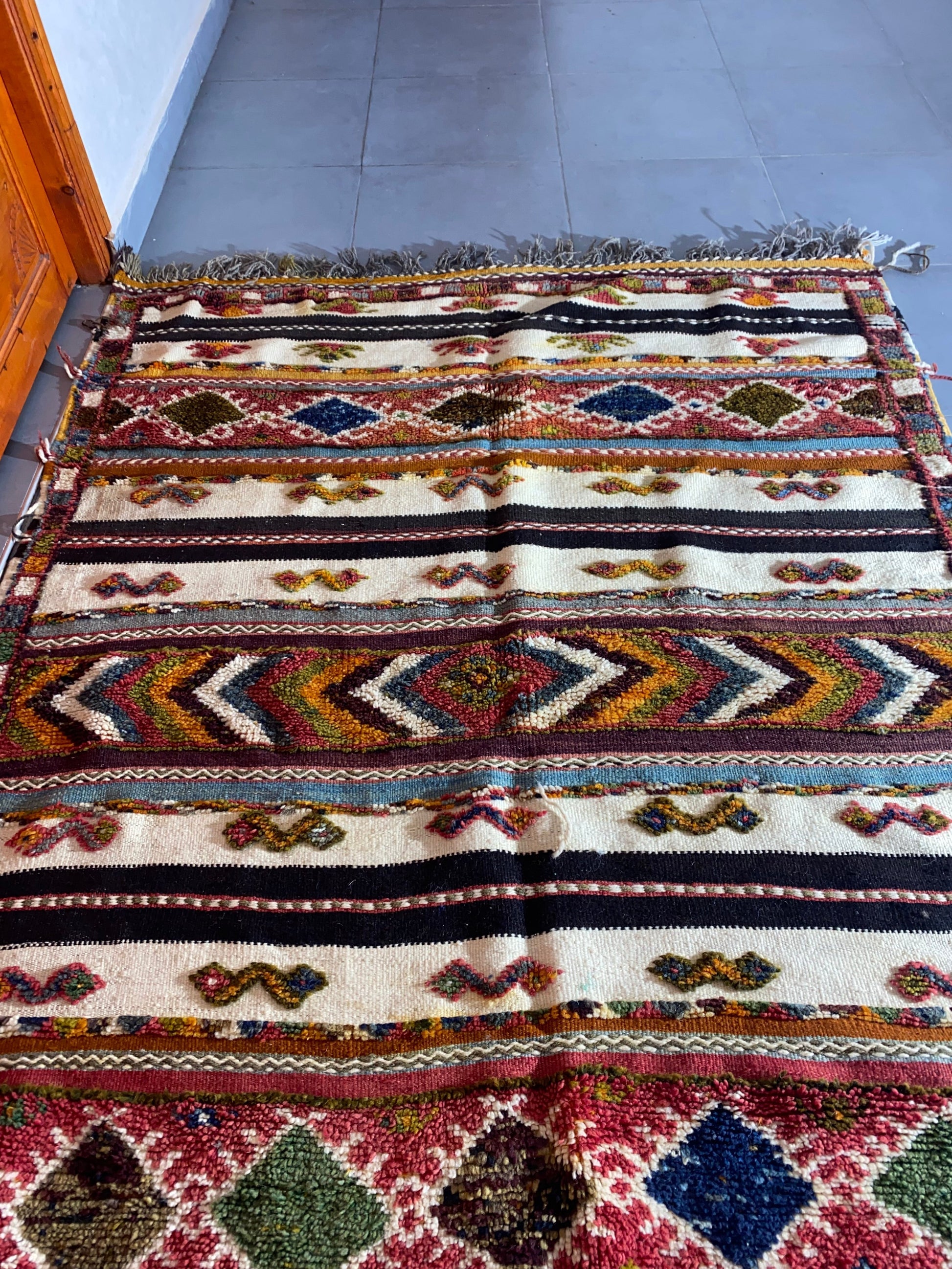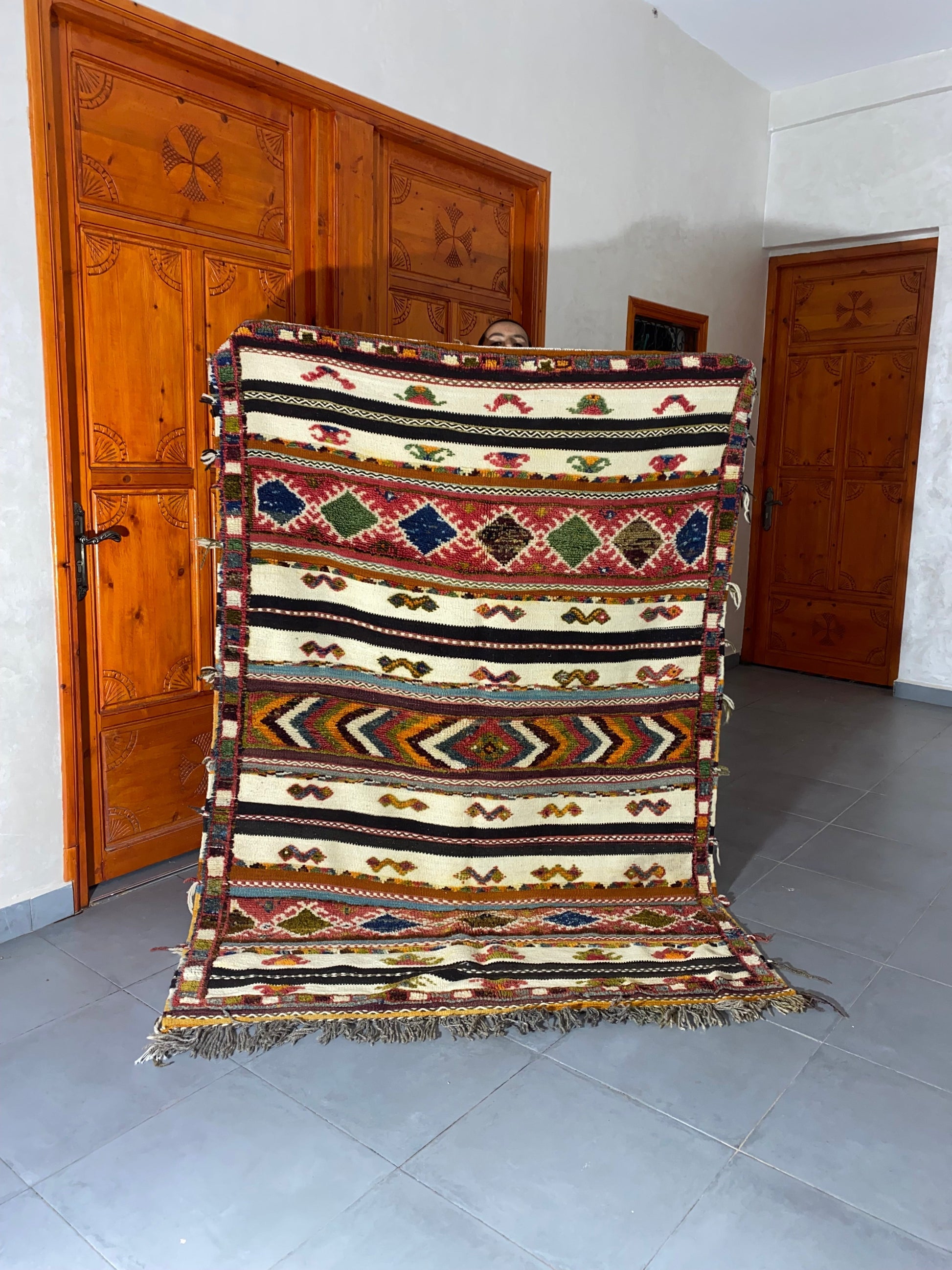 Moroccan Kilim handmade 100%wool berber rugs. size is 208x150 cm