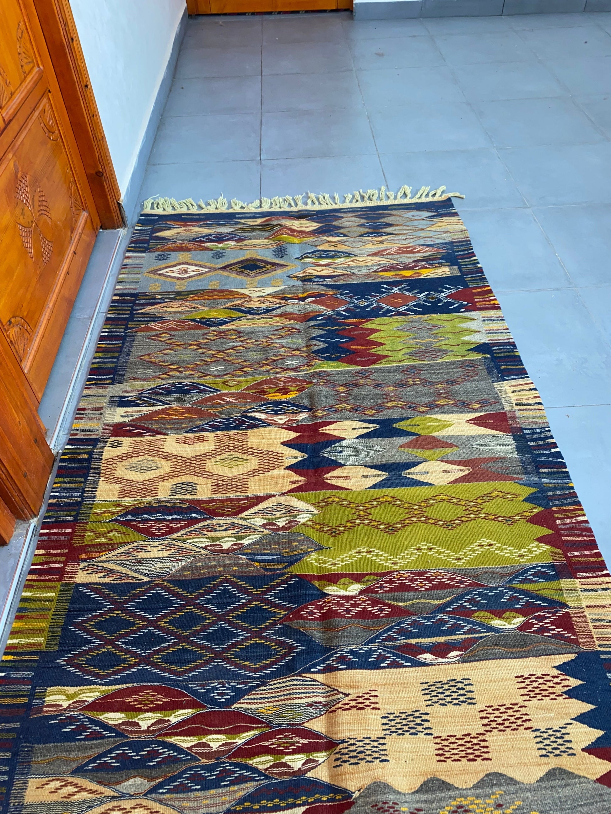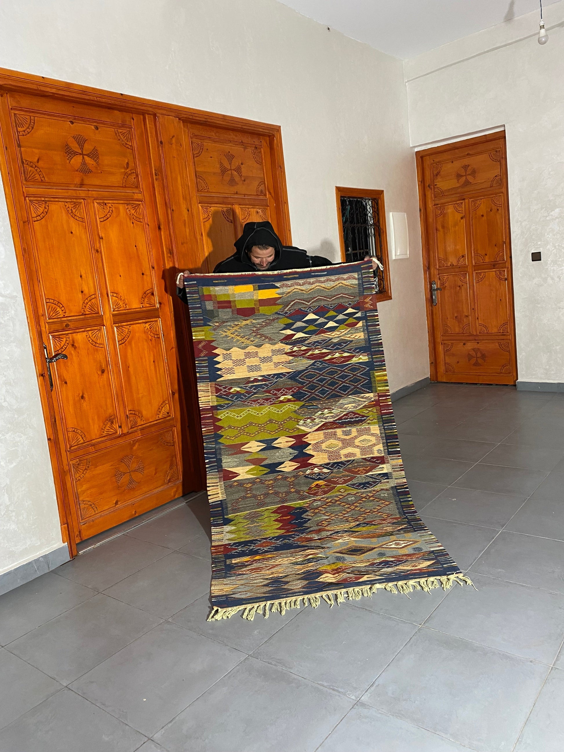 Moroccan Kilim handmade 100%wool berber rugs size is 210x110 cm