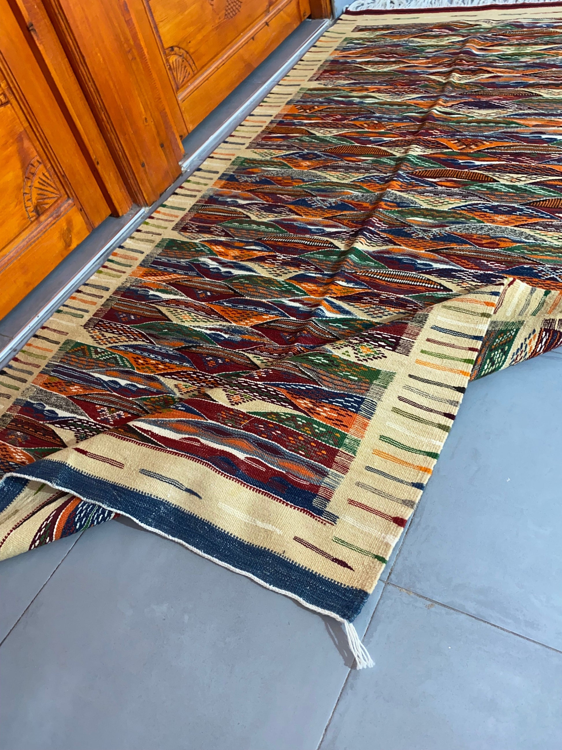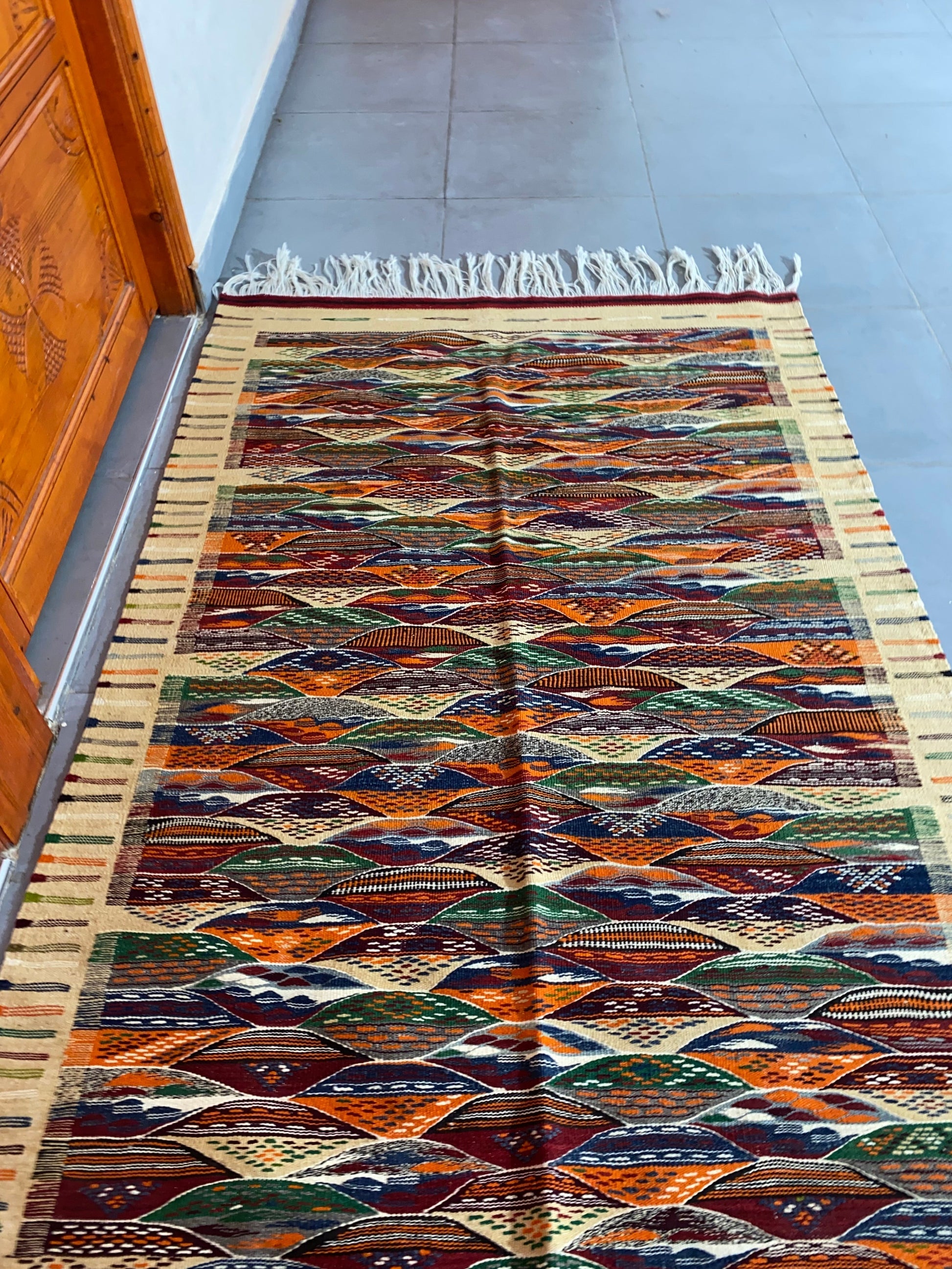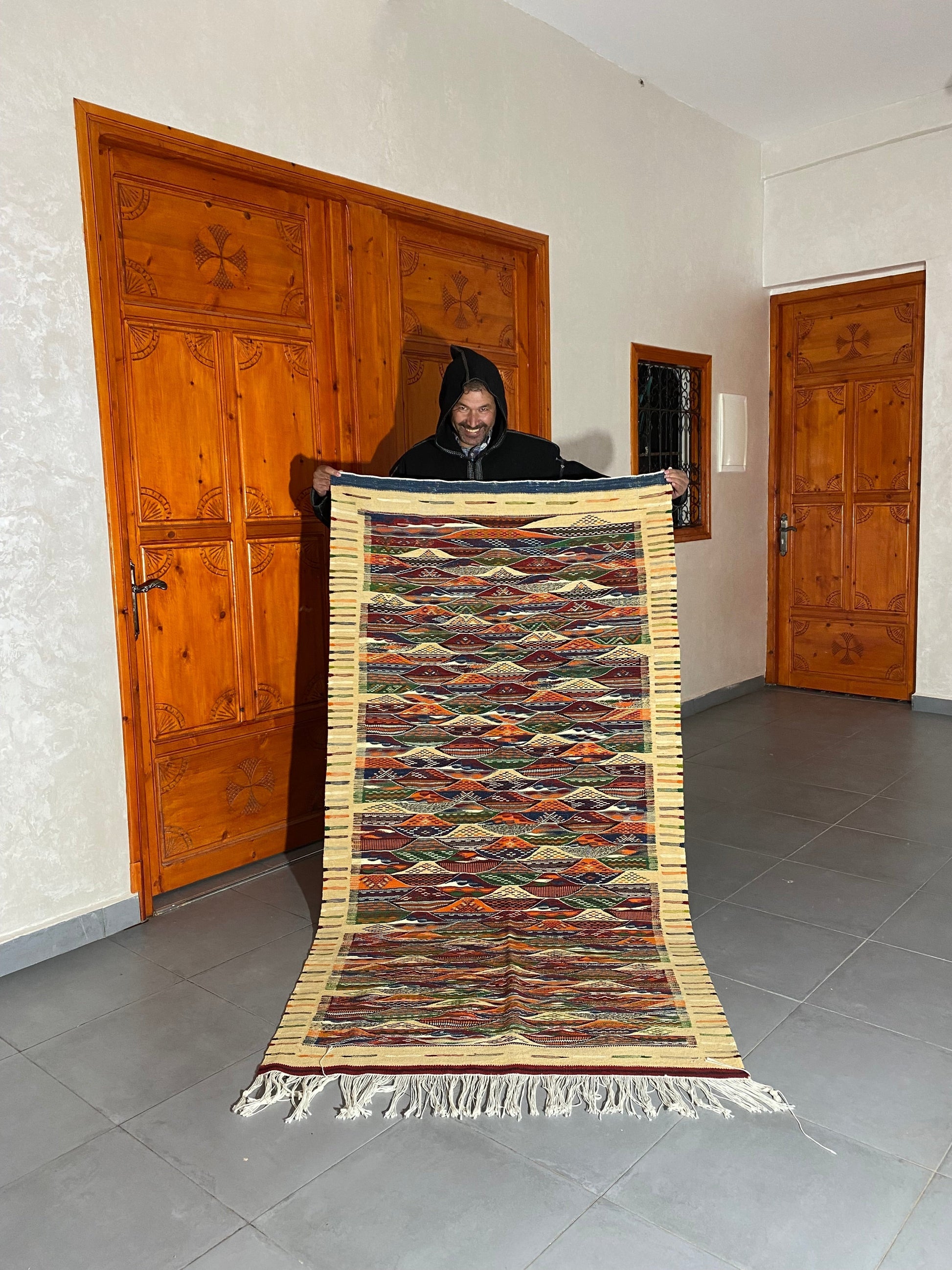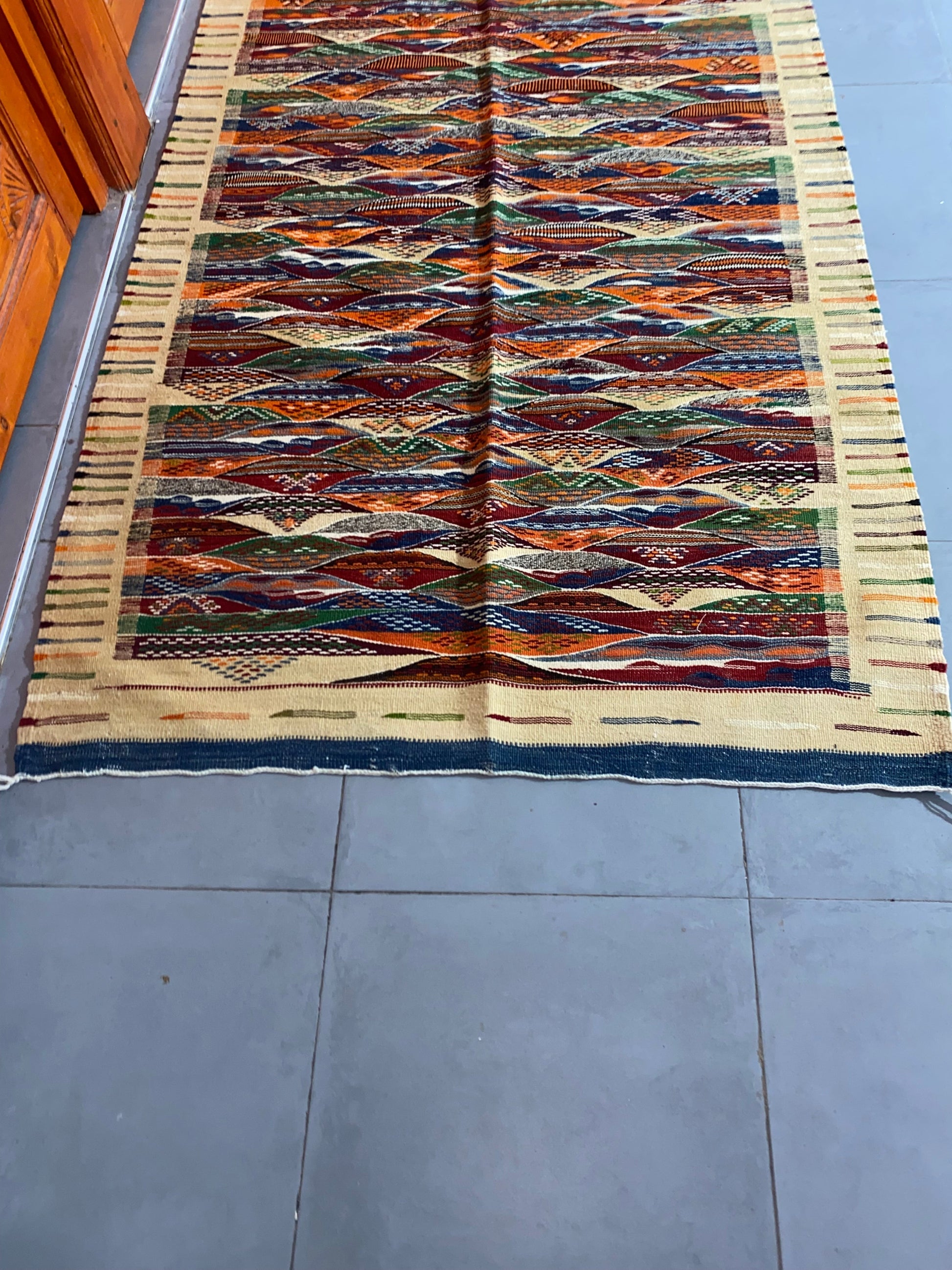 Moroccan Kilim handmade 100%wool berber rugs. size is 210x110 cm