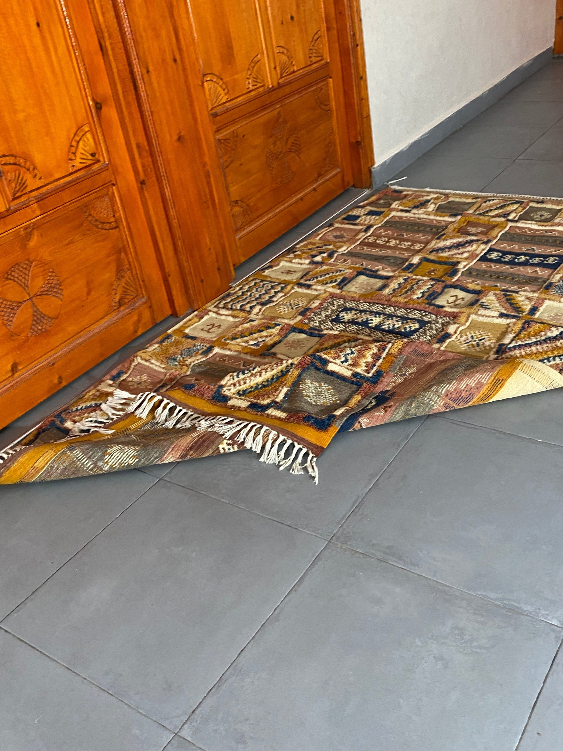 Moroccan Kilim handmade 100%wool berber rugs size is 210x115 cm