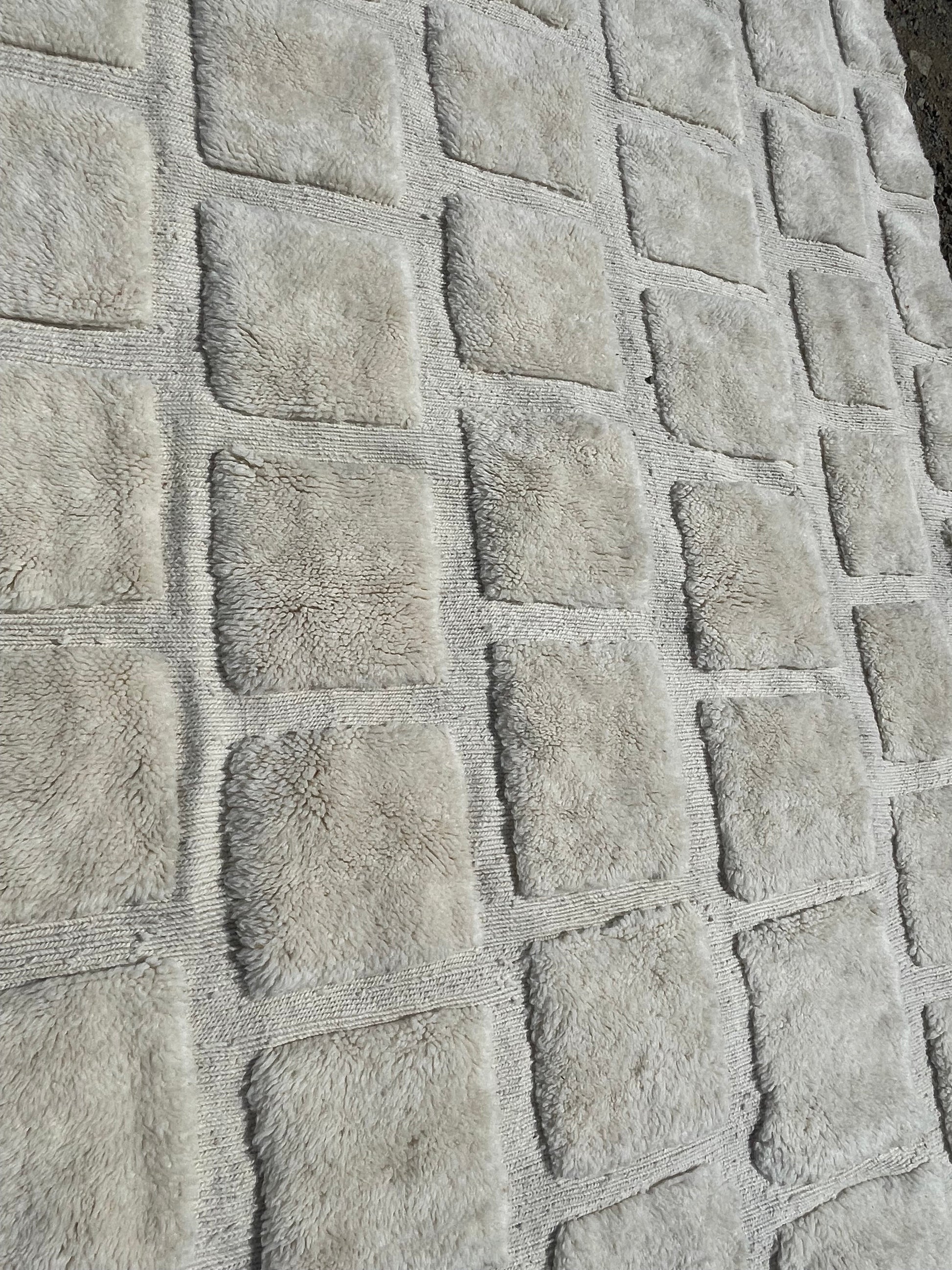 Handwoven from 100% wool by Berber artisans, this authentic Beni Ourain rug features a timeless geometric design and soft, plush texture. Perfect for adding warmth and elegance to any space."