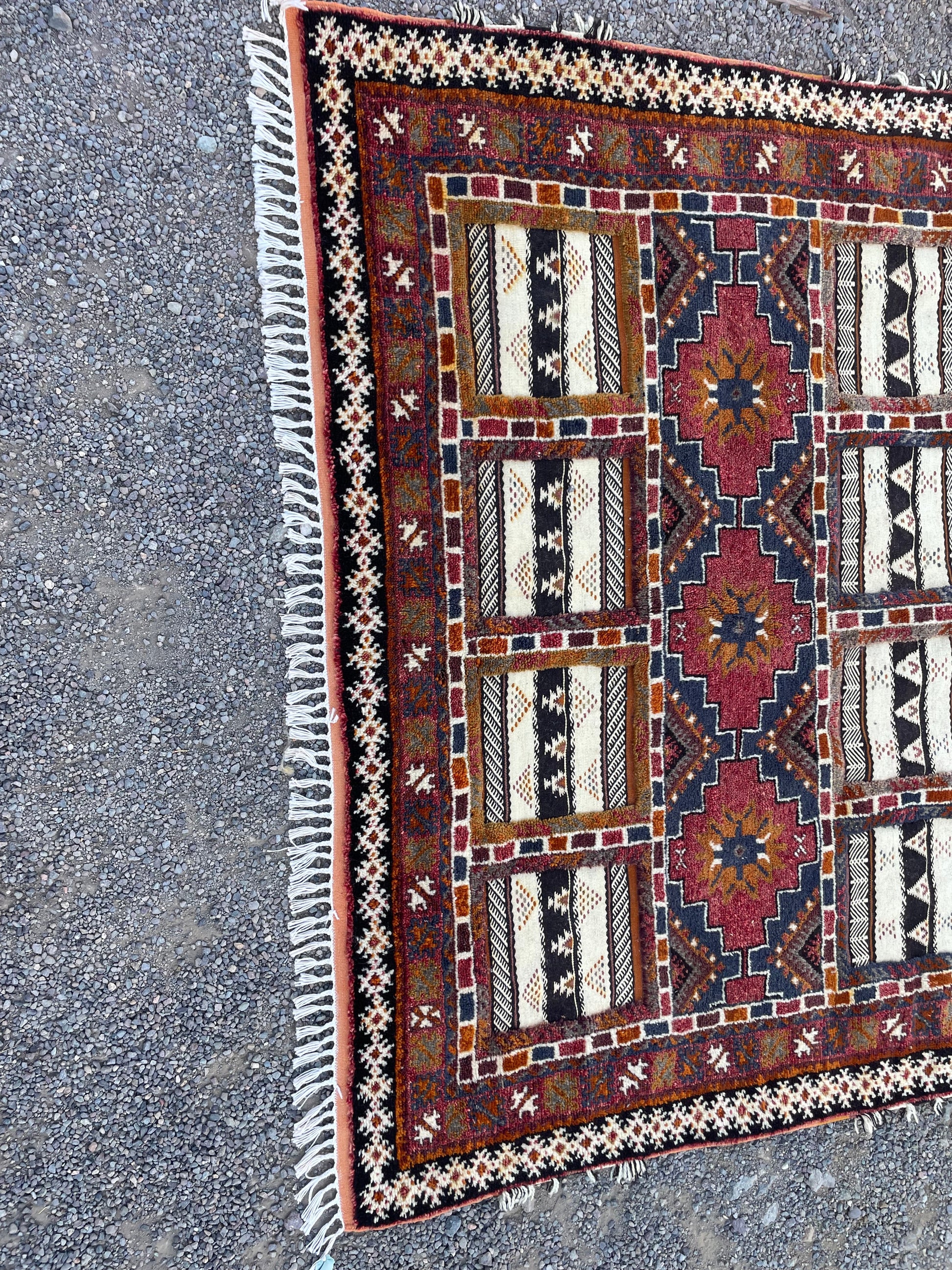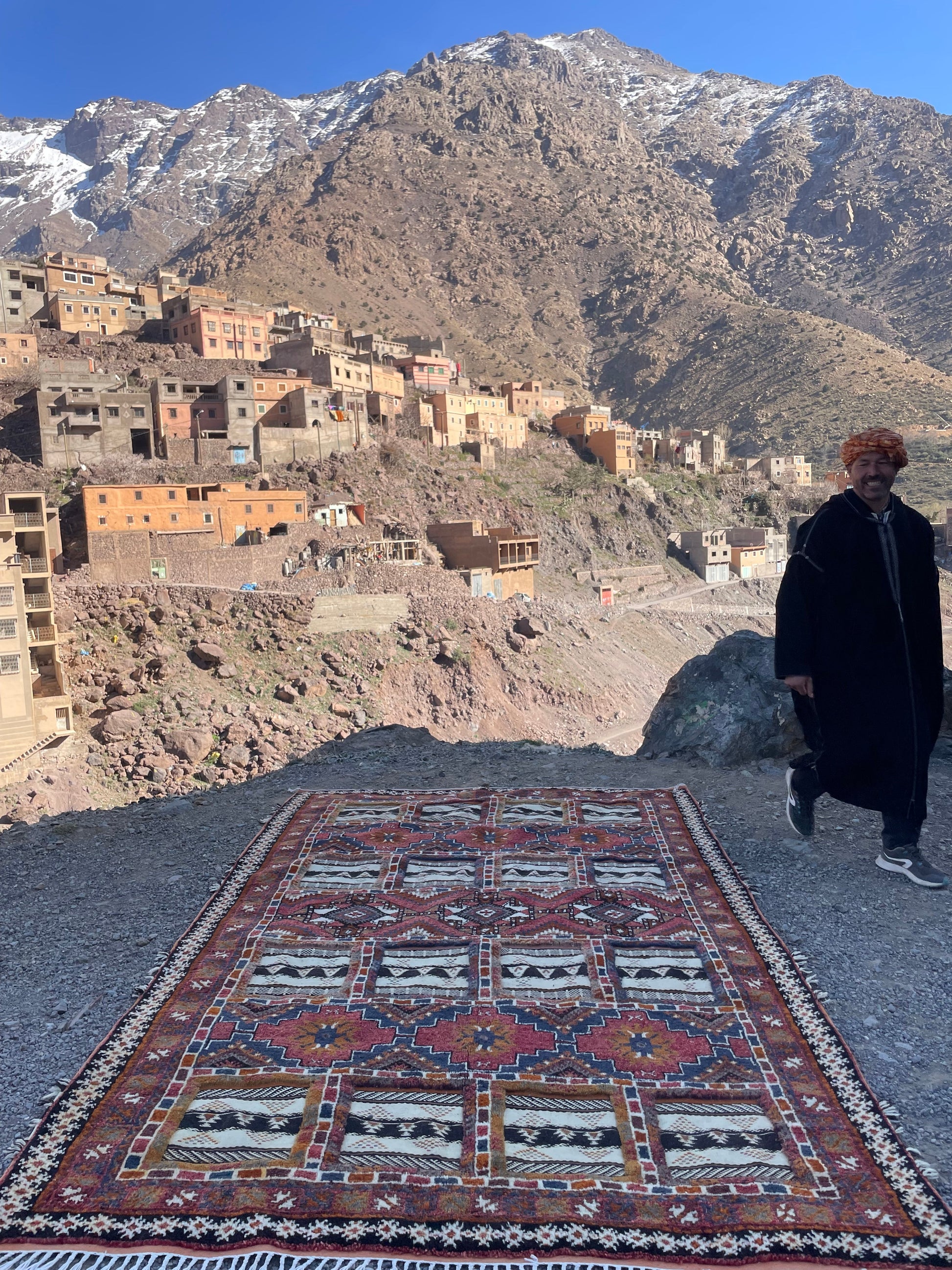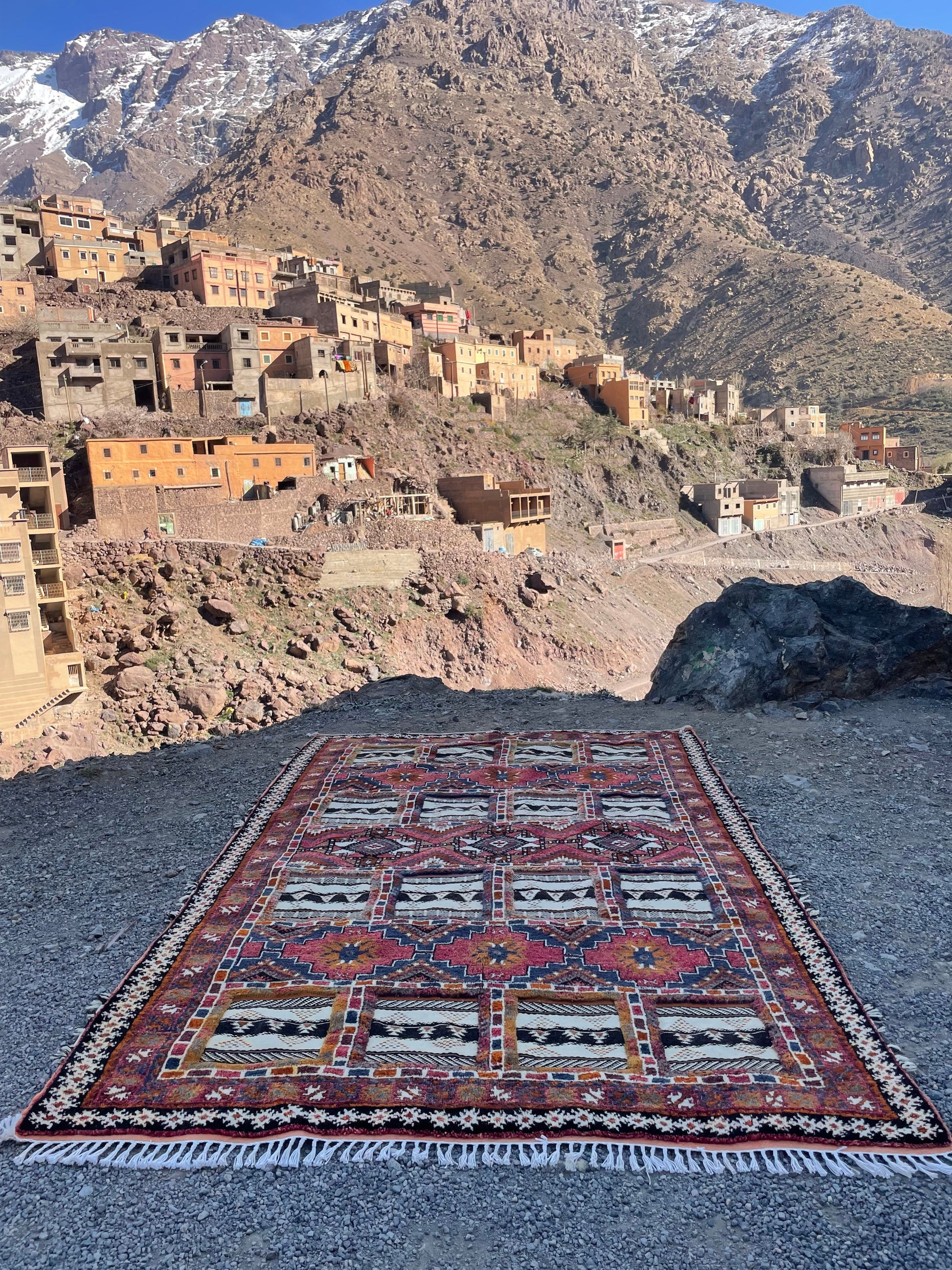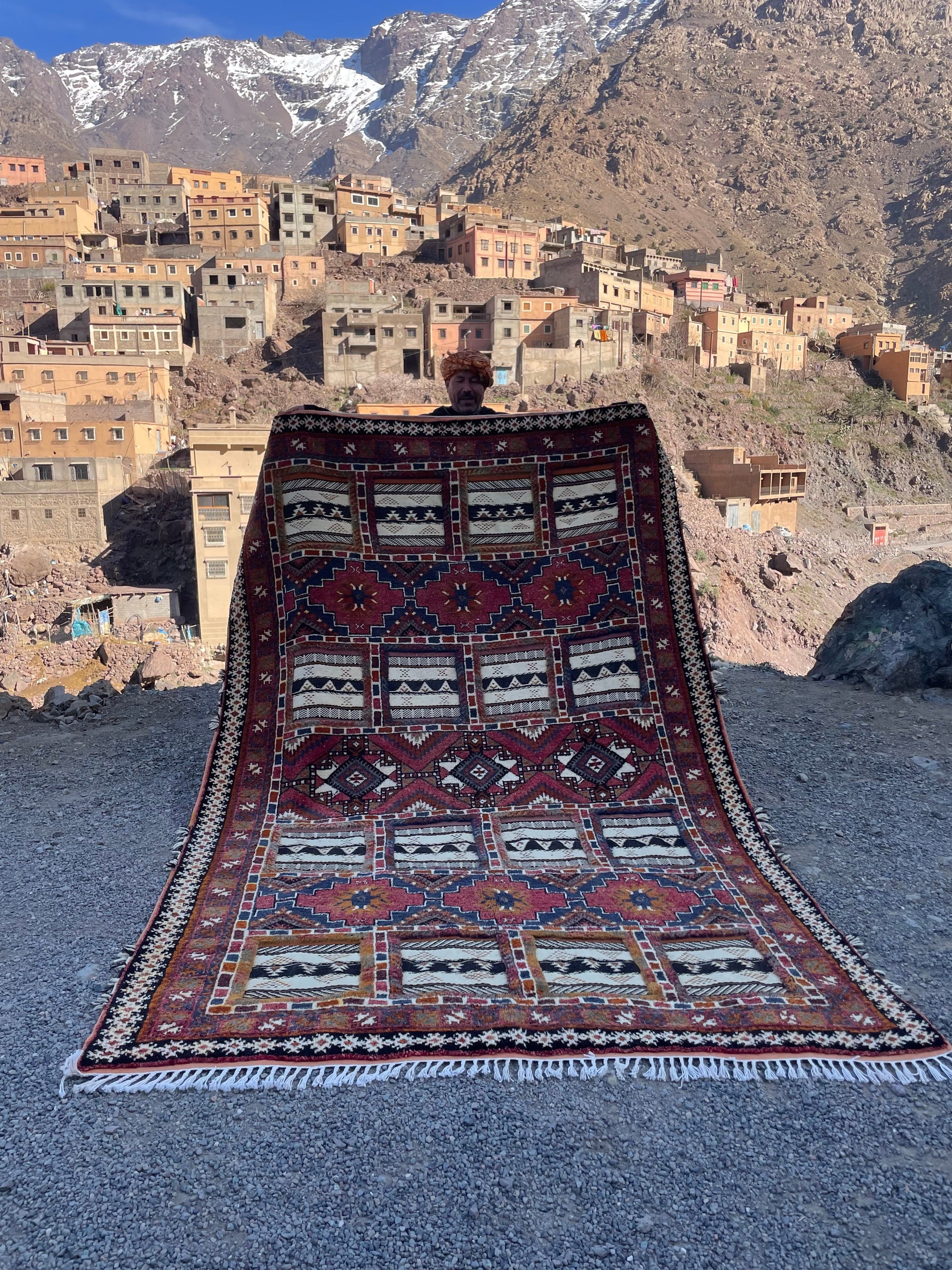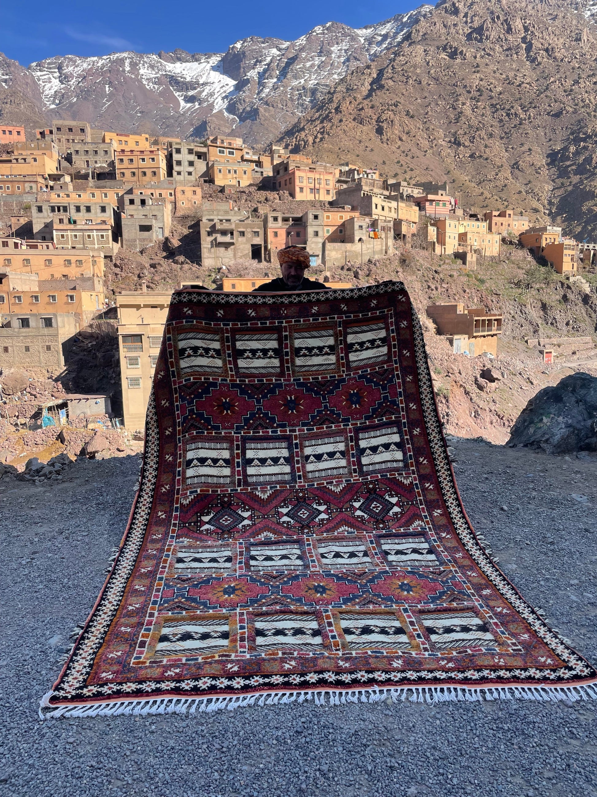 Fabulous rug from High-Atlas Morocco was made by Berber women with naturally dyed wool, which means this carpet is 100% natural.