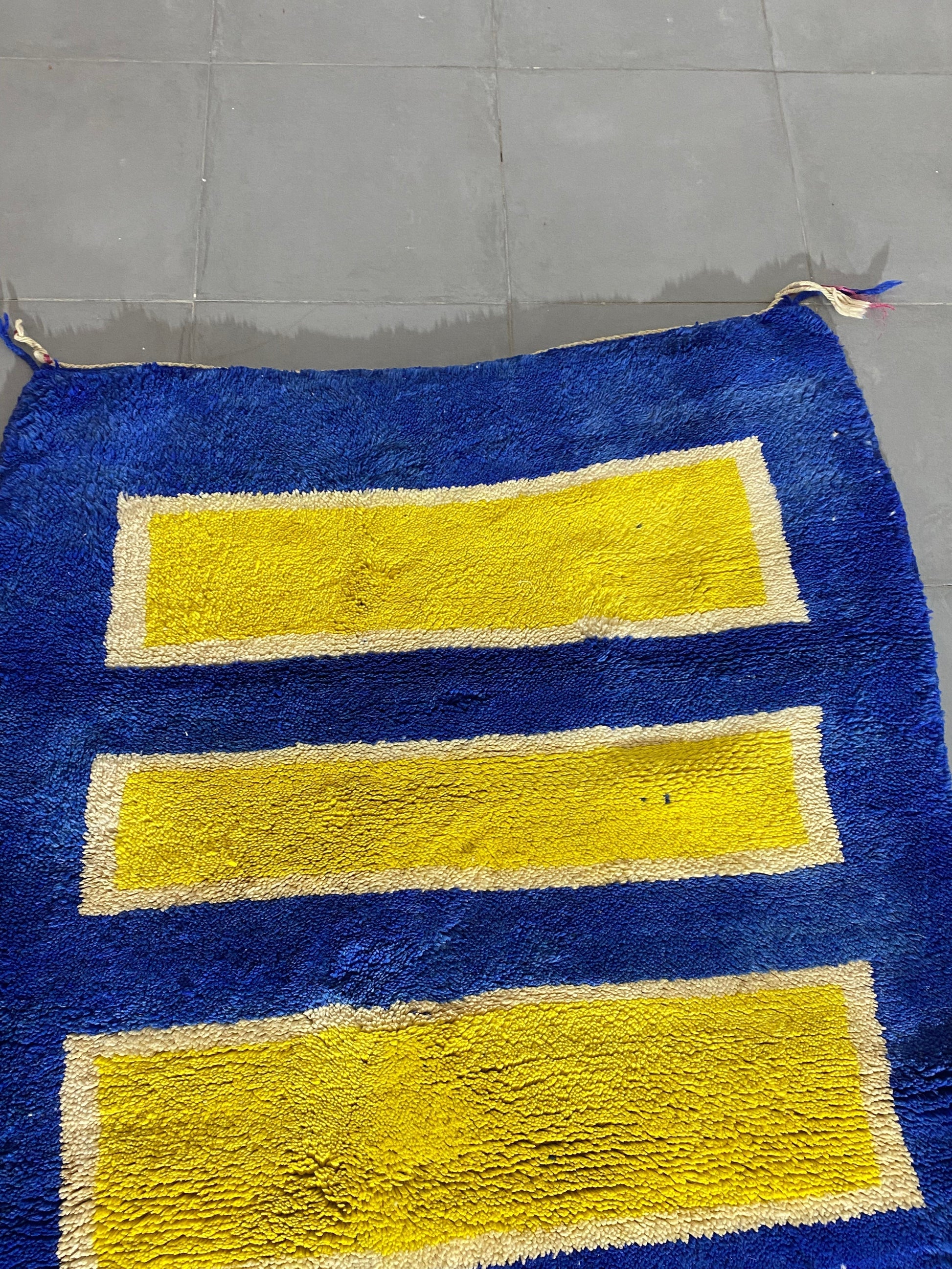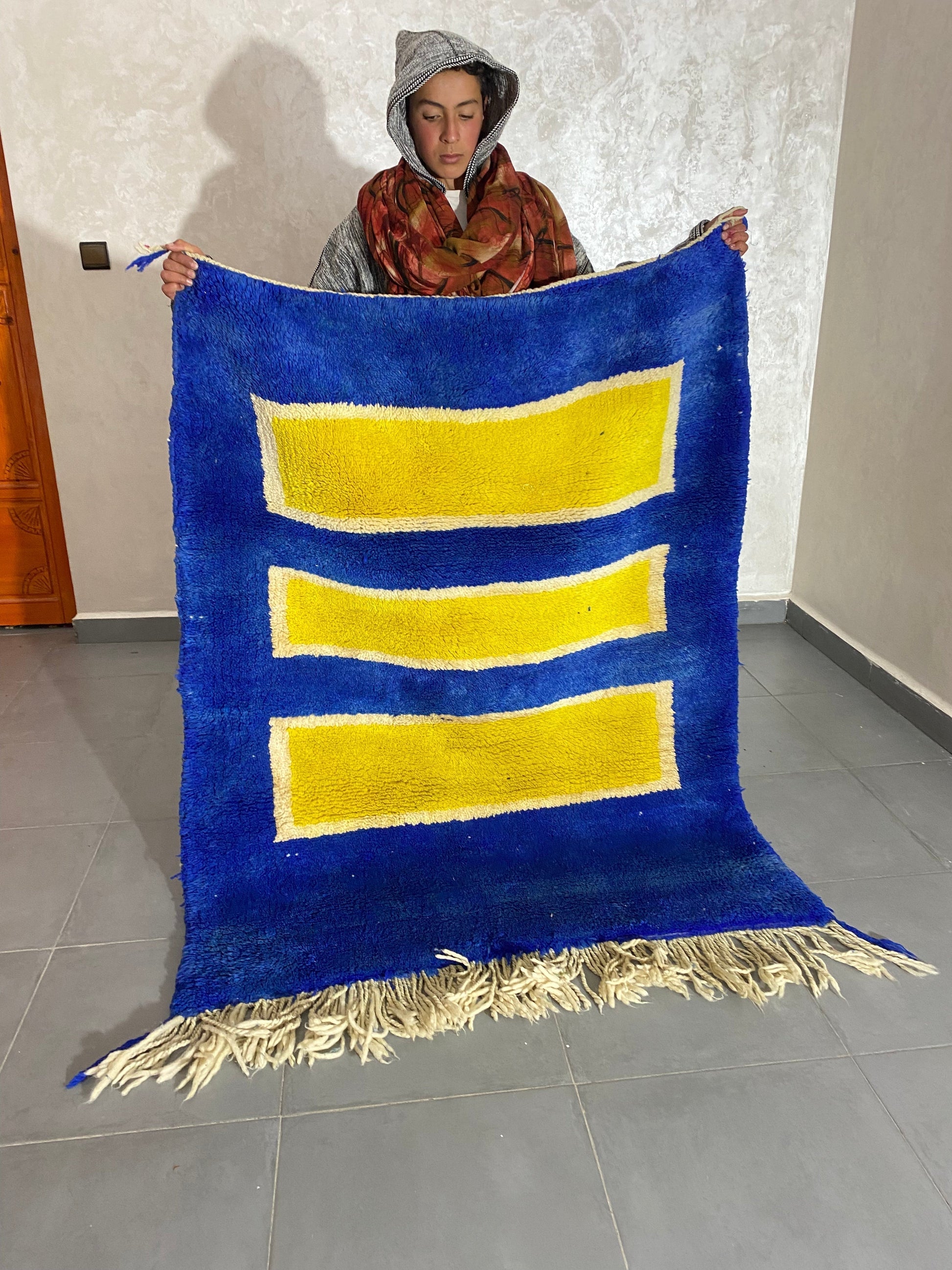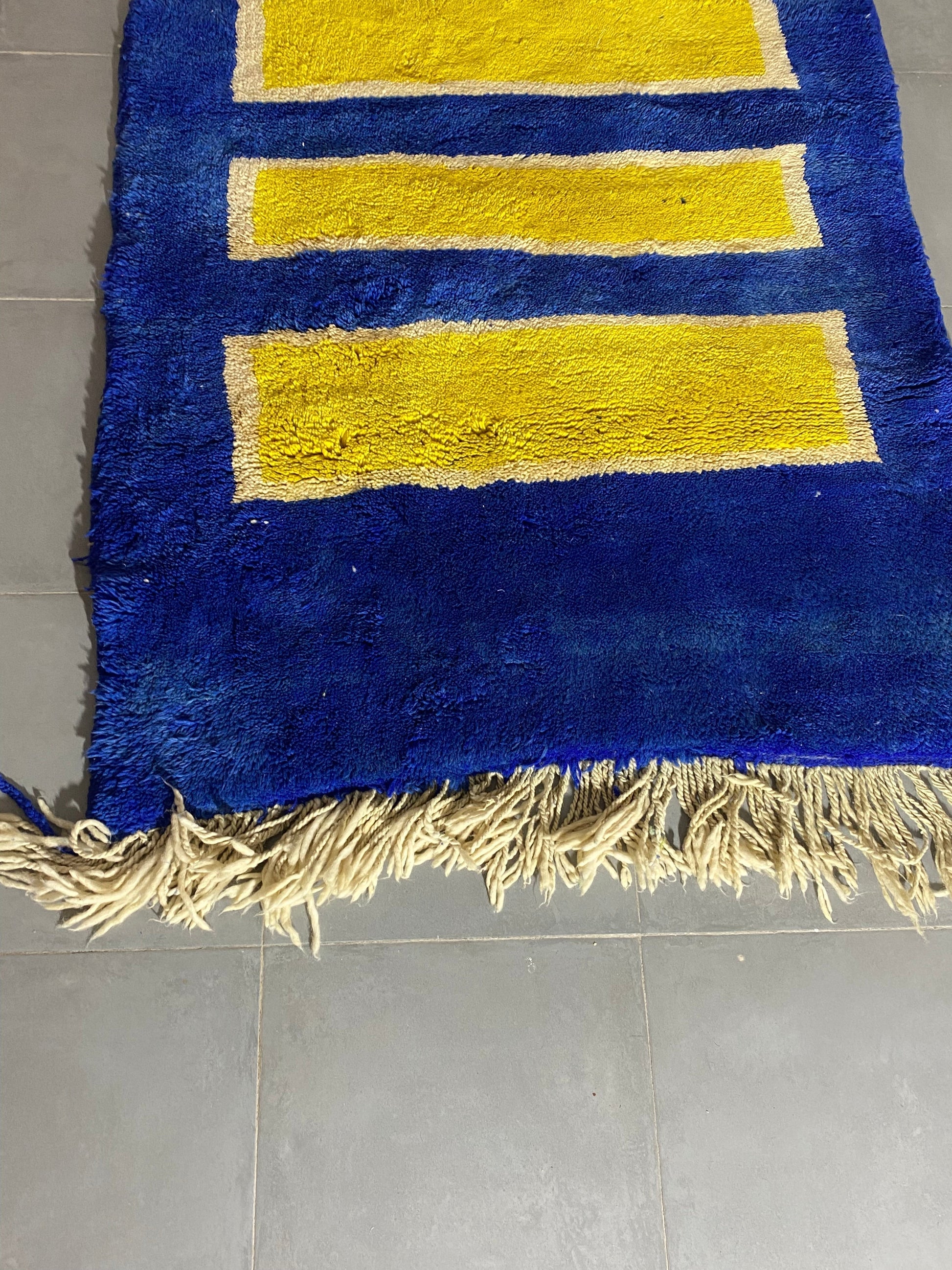 This Beni ourain rug is a Moroccan handmade rug, made between the middle Atlas and the Atlantic ocean of Morocco. Women in that region employed soft sheep wool and furnished it perfectly with wide diamonds shapes and tiny perfect details.