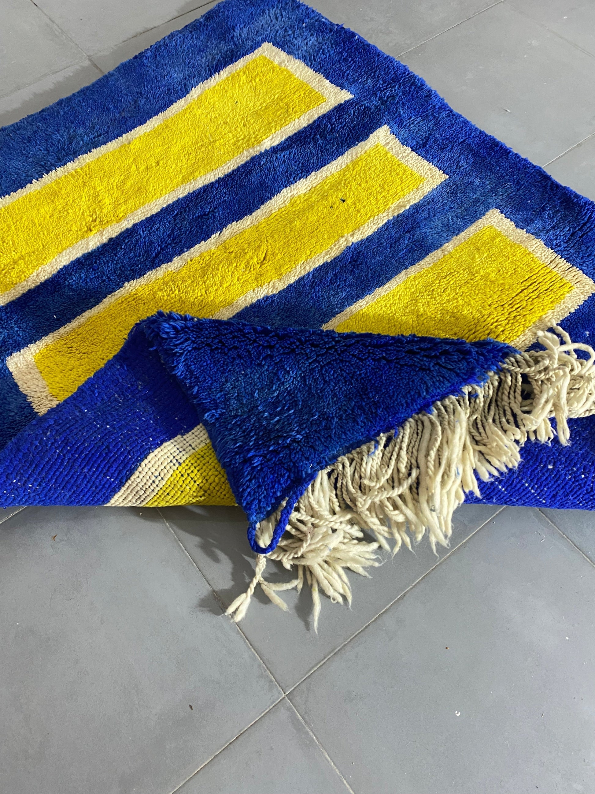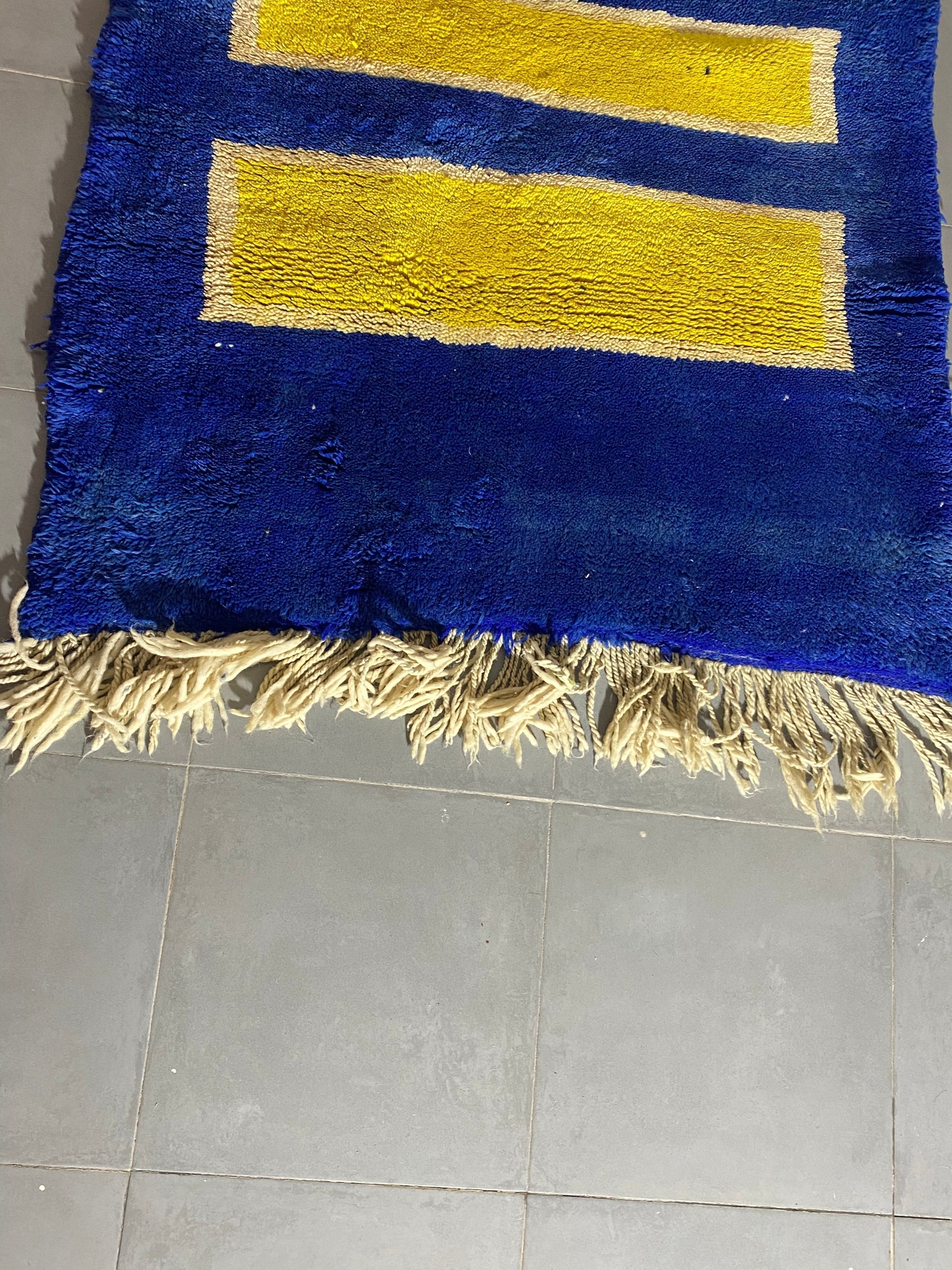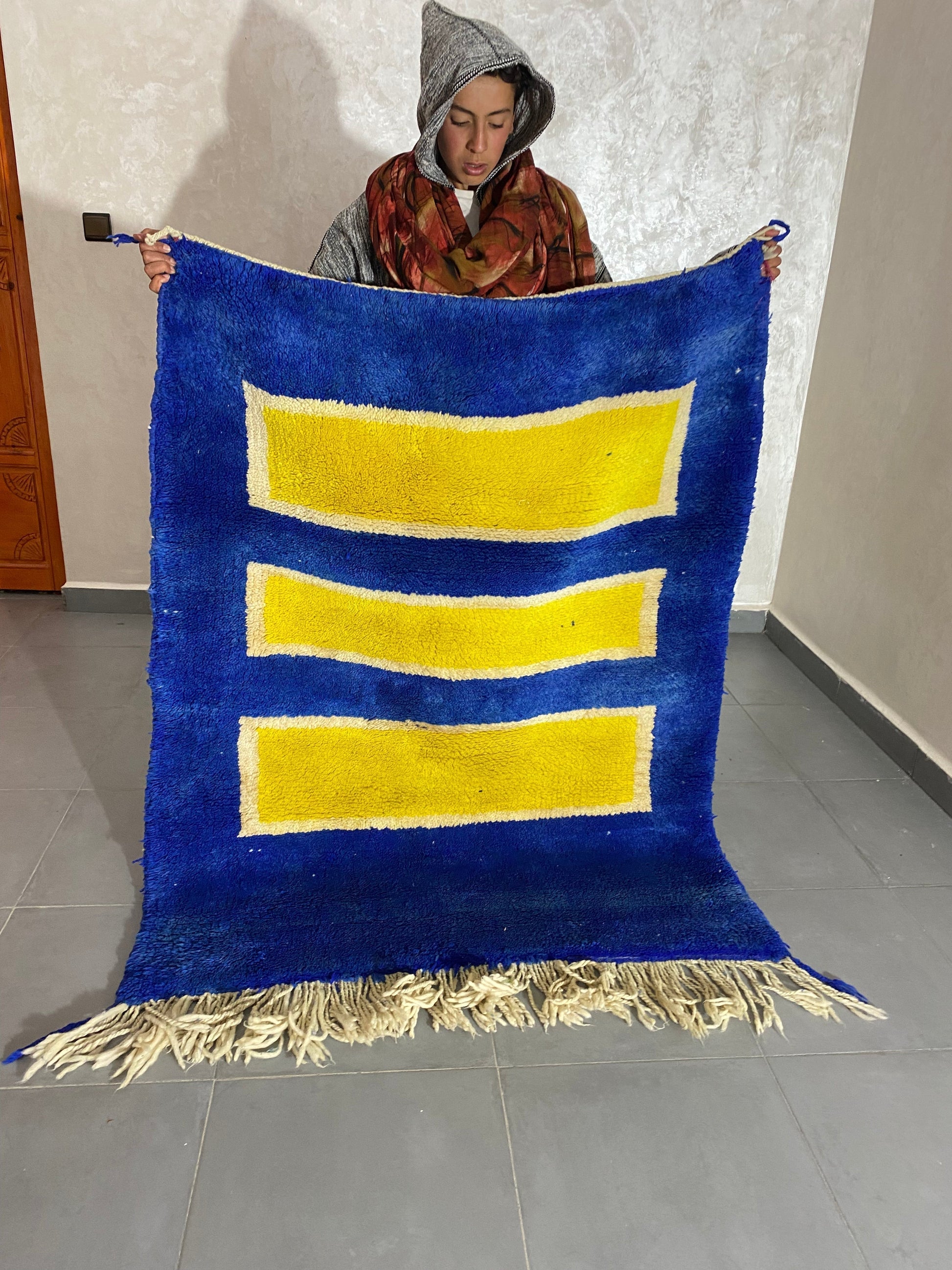This Beni ourain rug is a Moroccan handmade rug, made between the middle Atlas and the Atlantic ocean of Morocco. Women in that region employed soft sheep wool and furnished it perfectly with wide diamonds shapes and tiny perfect details.