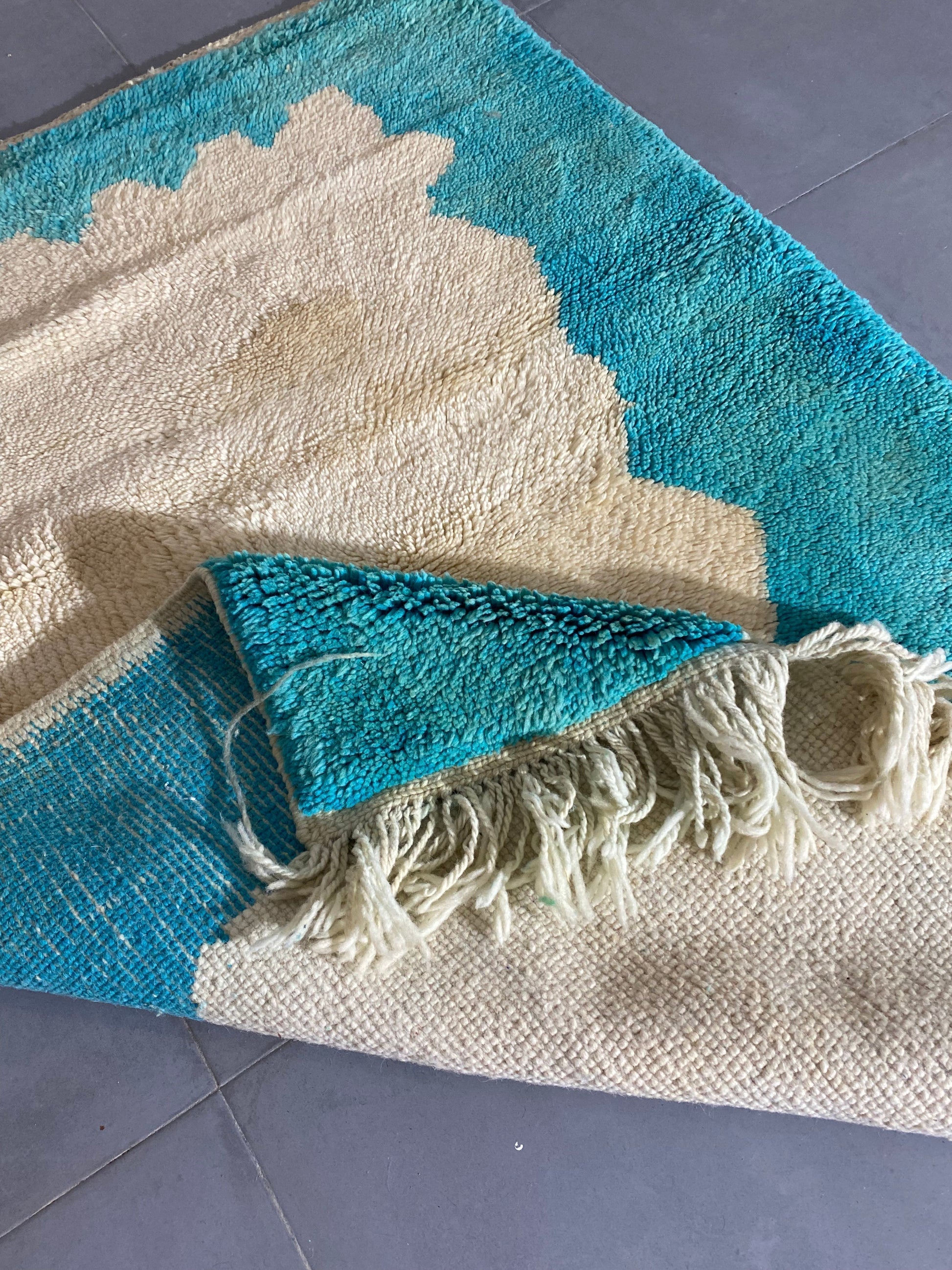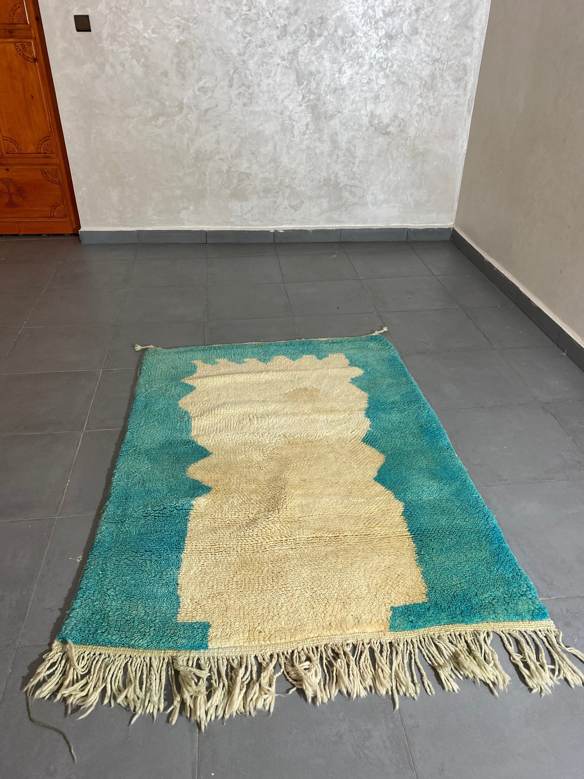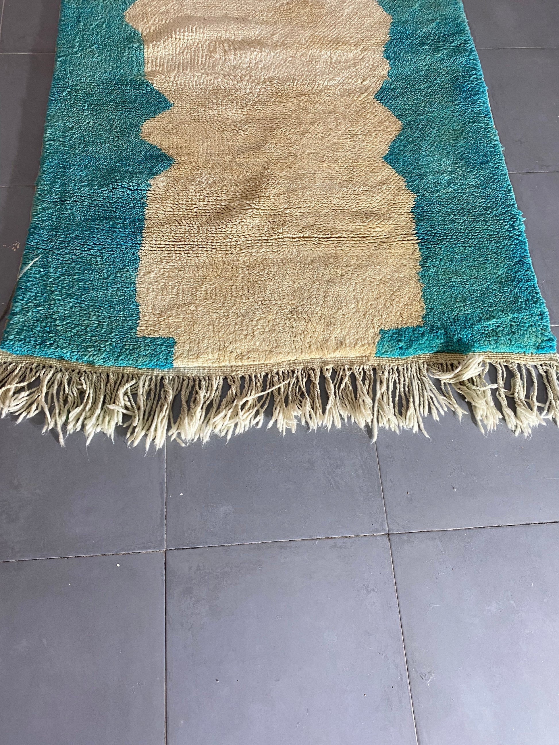 This Beni ourain rug is a Moroccan handmade rug, made between the middle Atlas and the Atlantic ocean of Morocco. Women in that region employed soft sheep wool and furnished it perfectly with wide diamonds shapes and tiny perfect details.