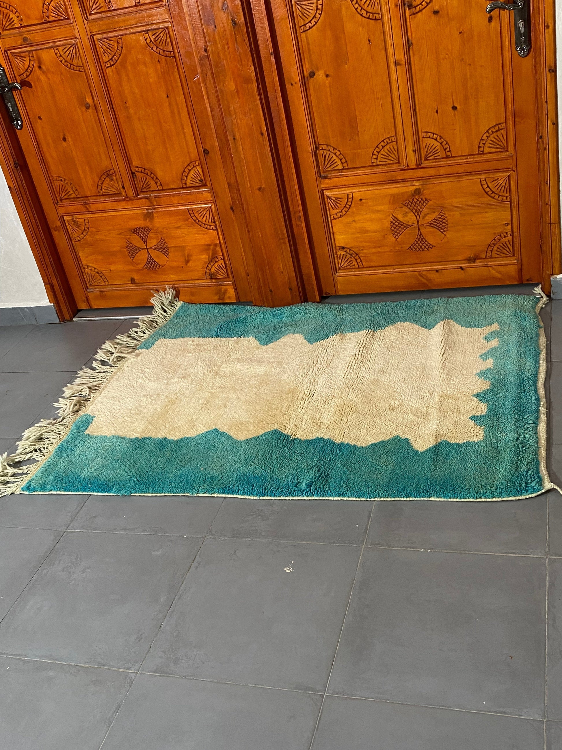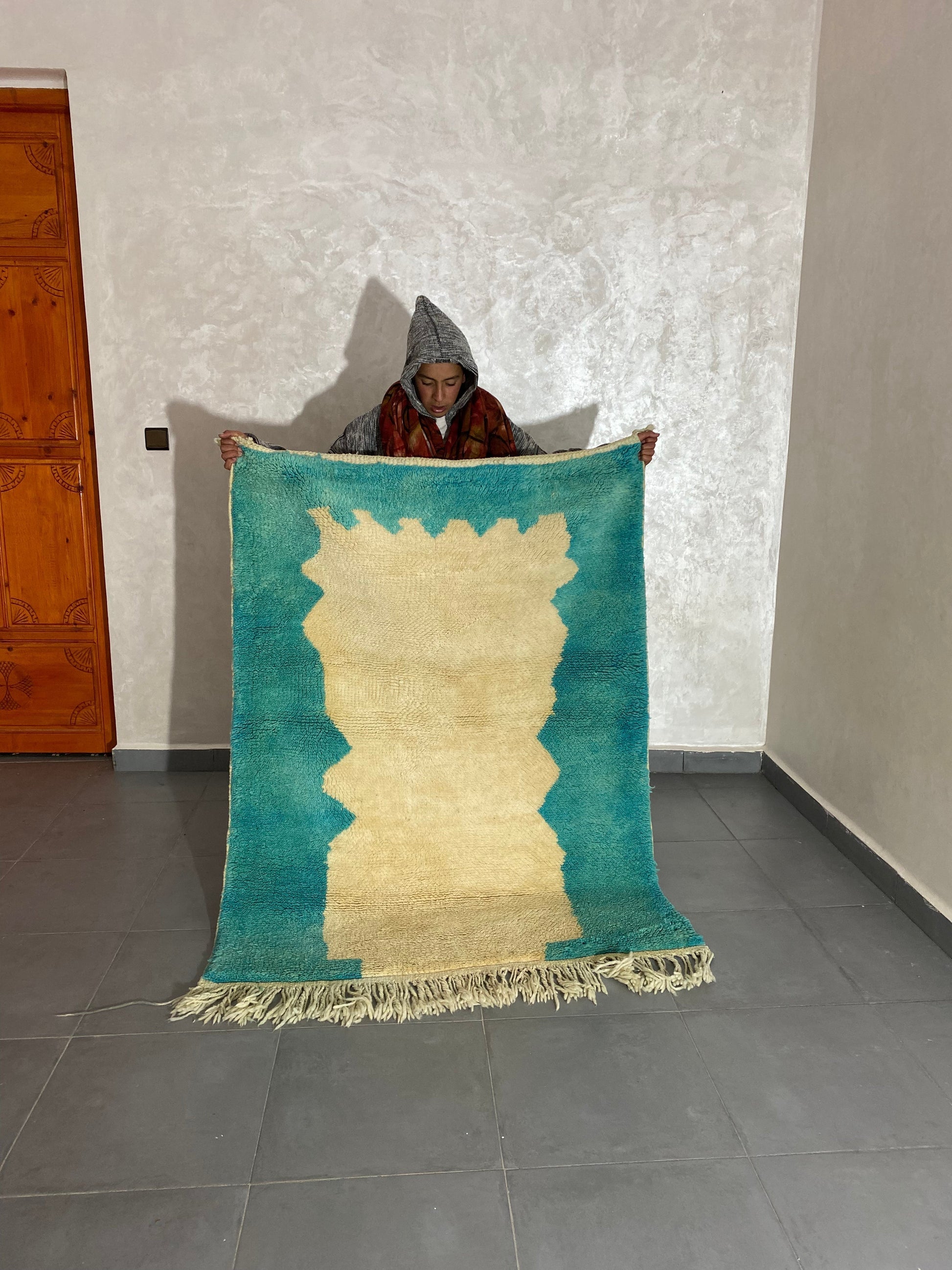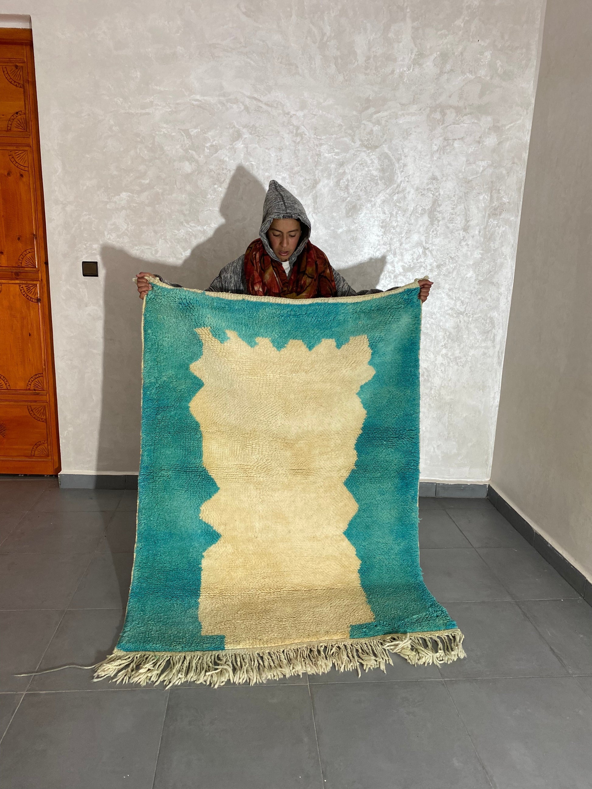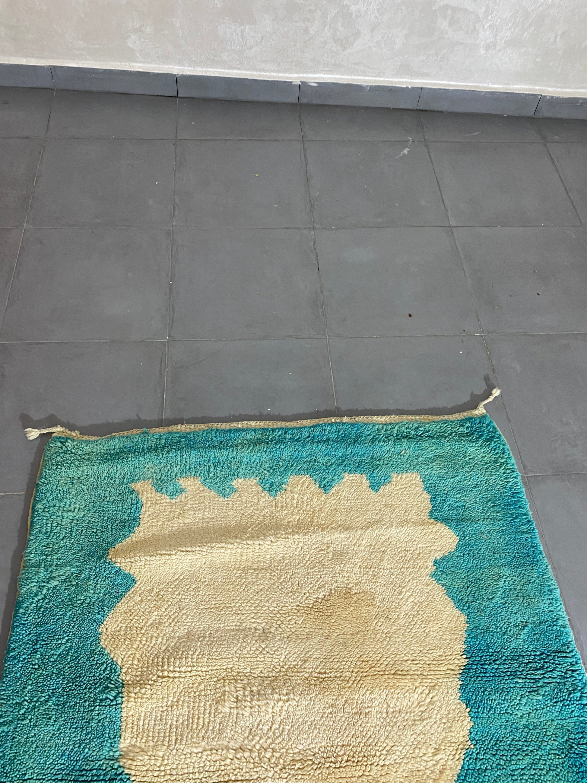 This Beni ourain rug is a Moroccan handmade rug, made between the middle Atlas and the Atlantic ocean of Morocco. Women in that region employed soft sheep wool and furnished it perfectly with wide diamonds shapes and tiny perfect details.