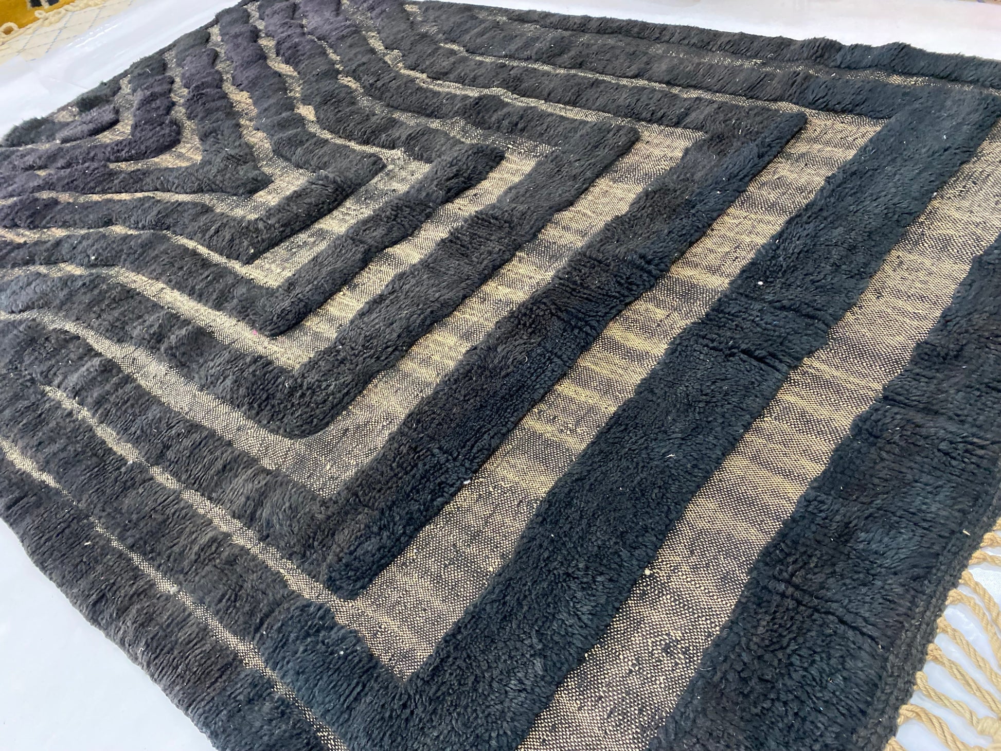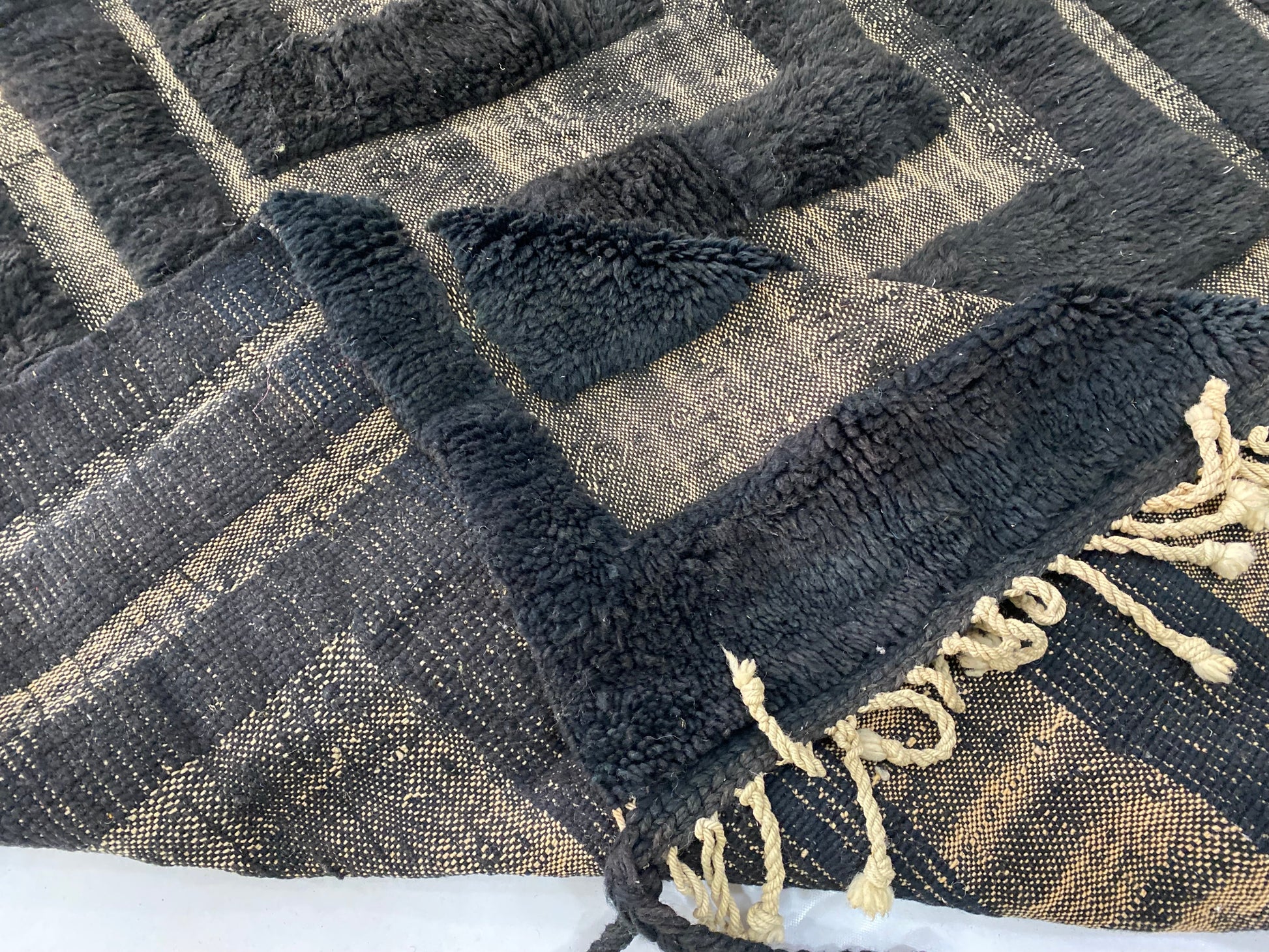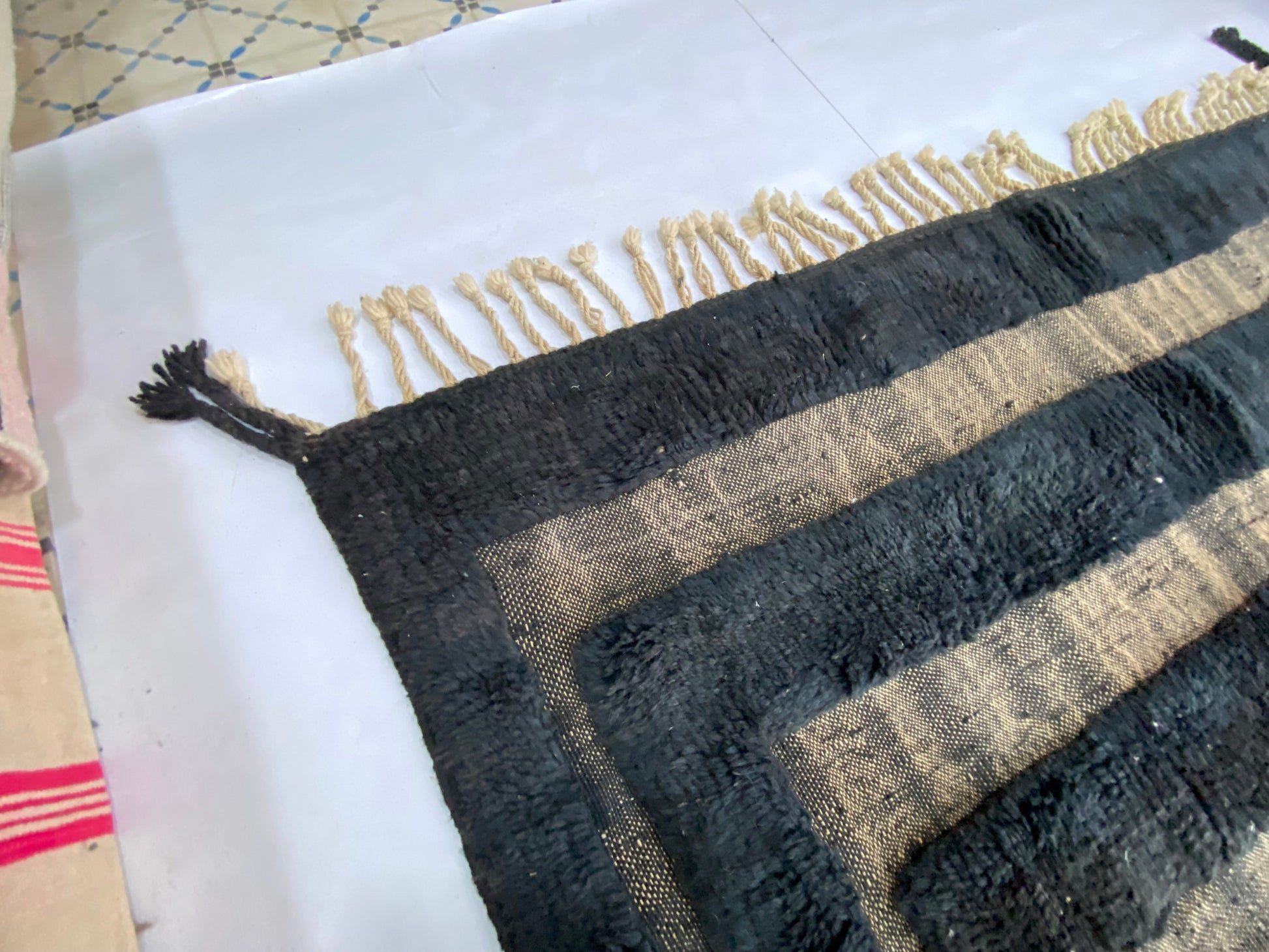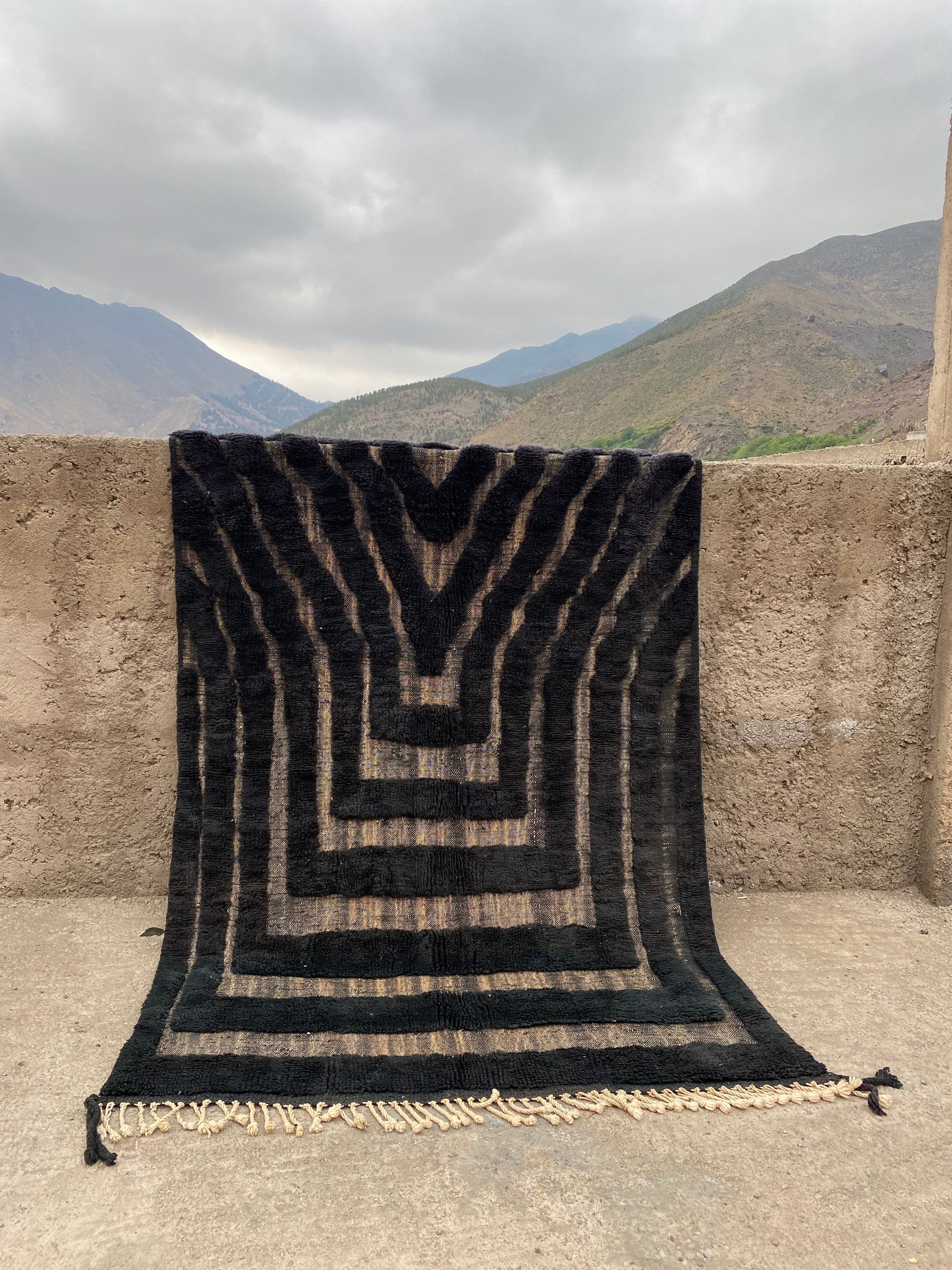 This Beni ourain rug is a Moroccan handmade rug, made between the middle Atlas and the Atlantic ocean of Morocco. Women in that region employed soft sheep wool and furnished it perfectly with wide diamonds shapes and tiny perfect details.