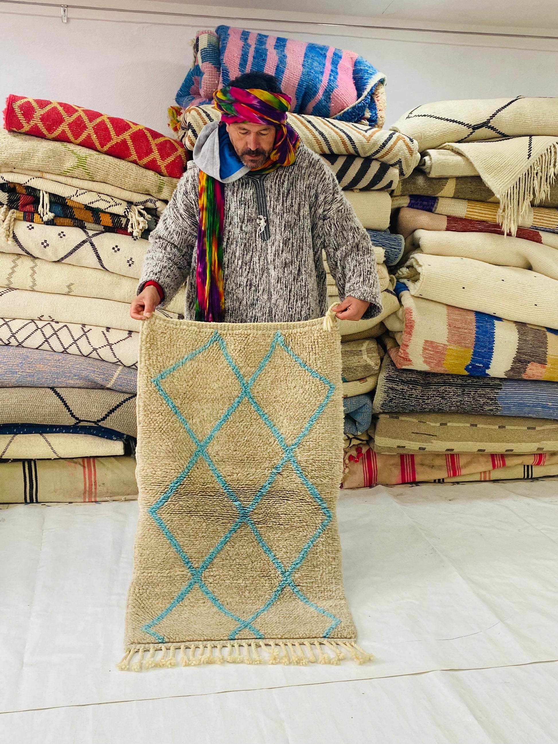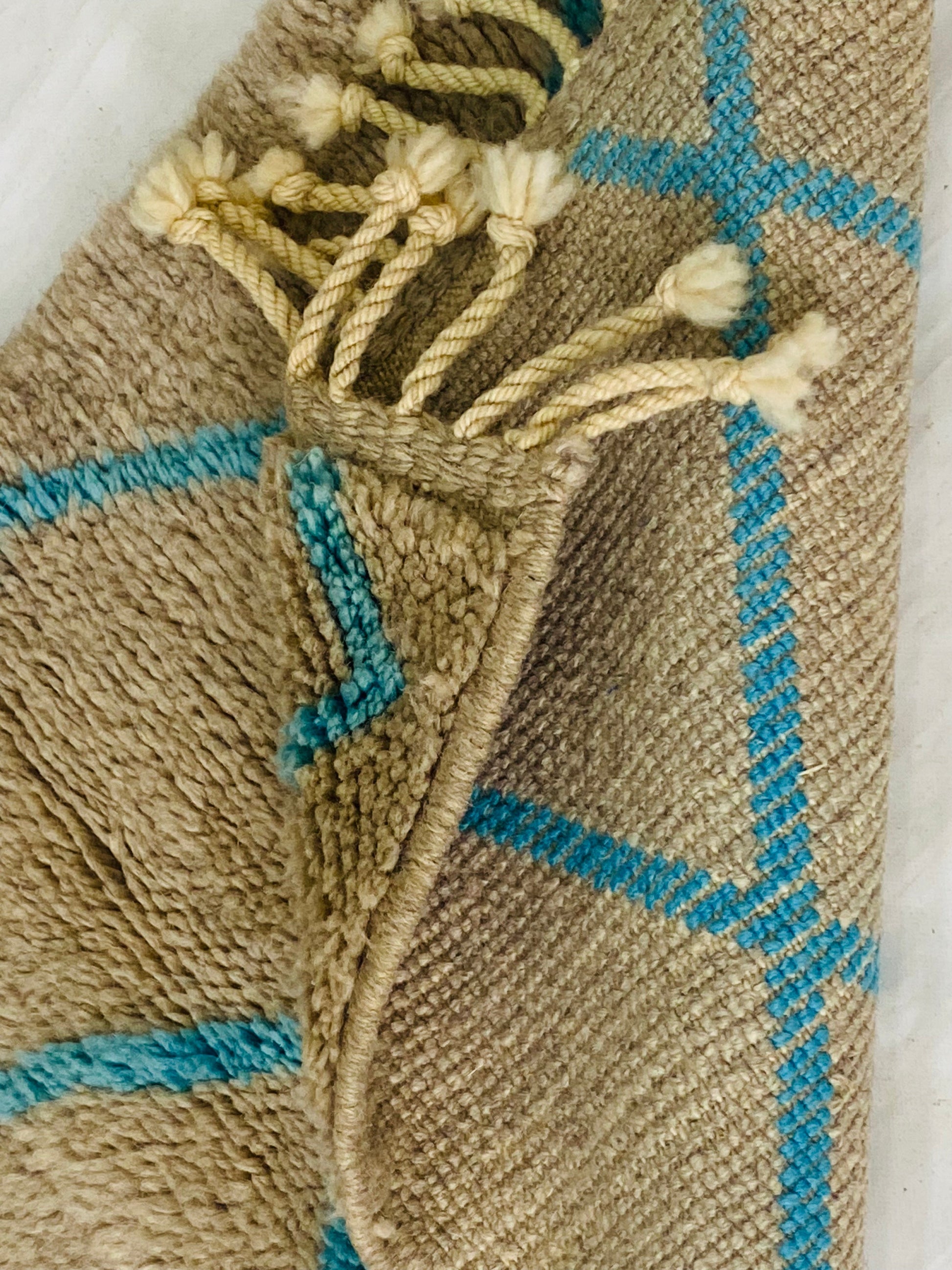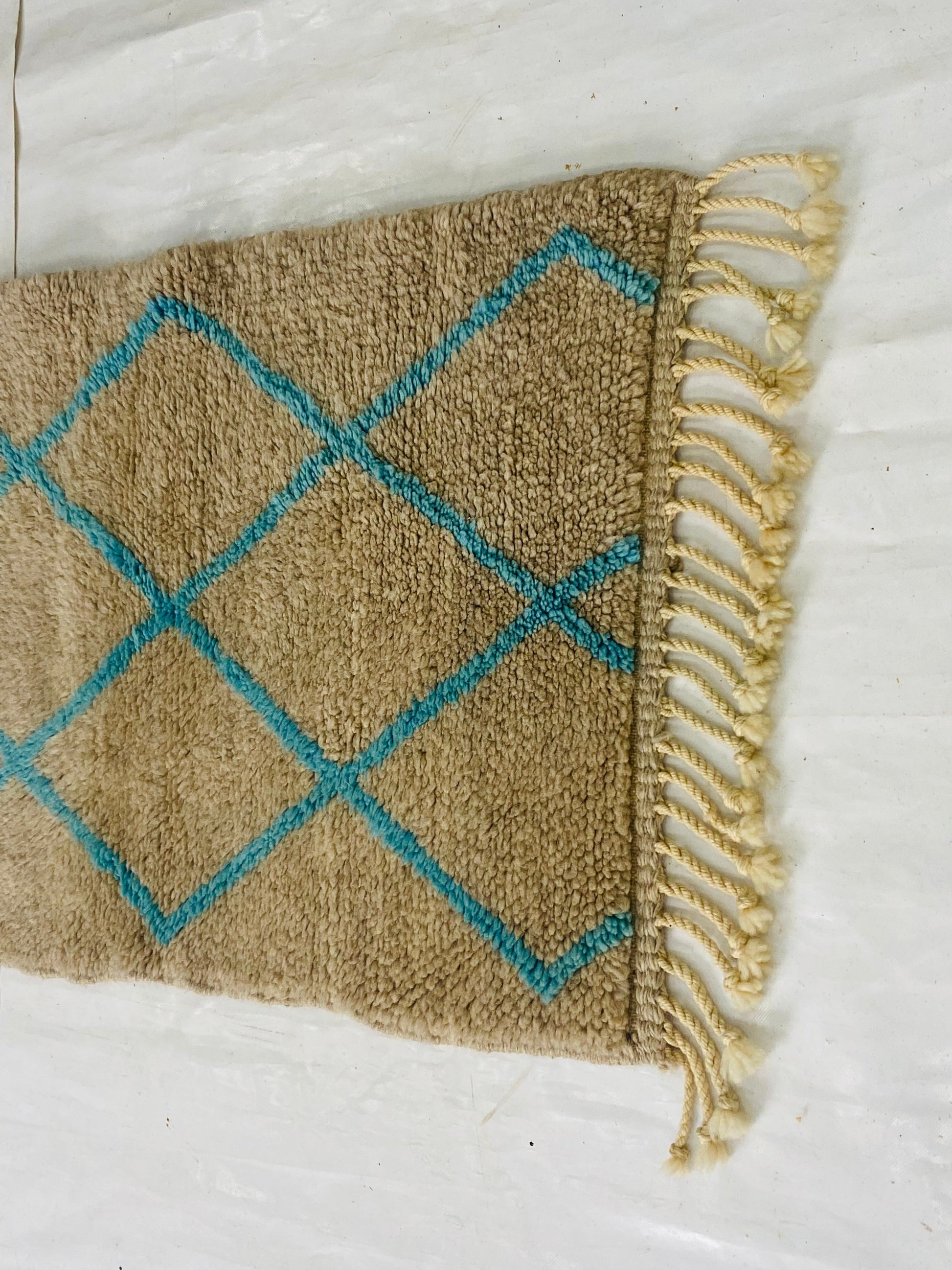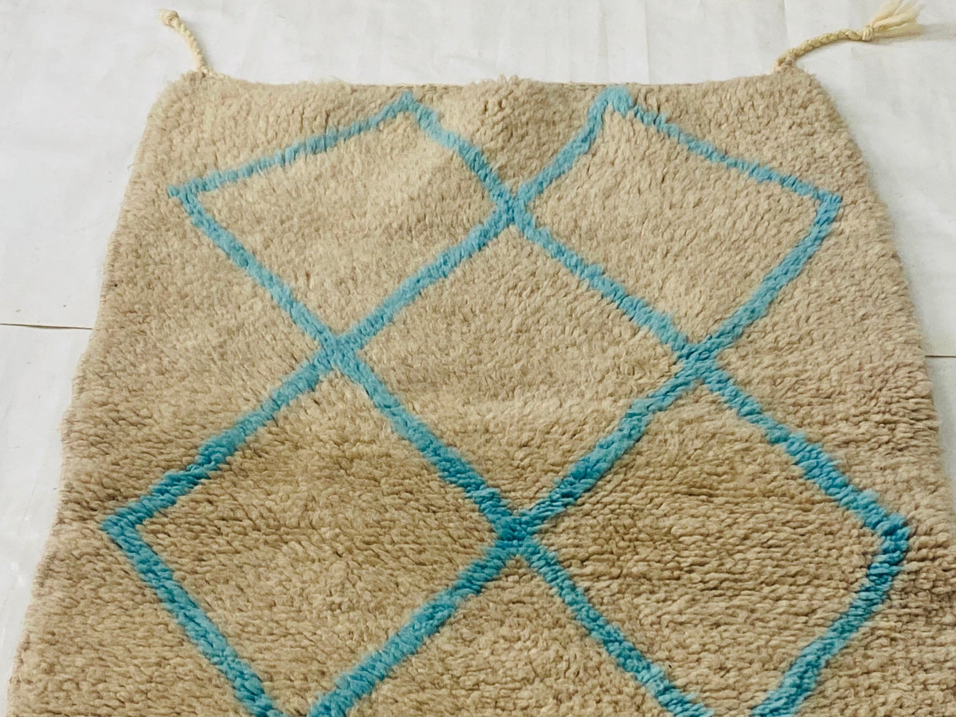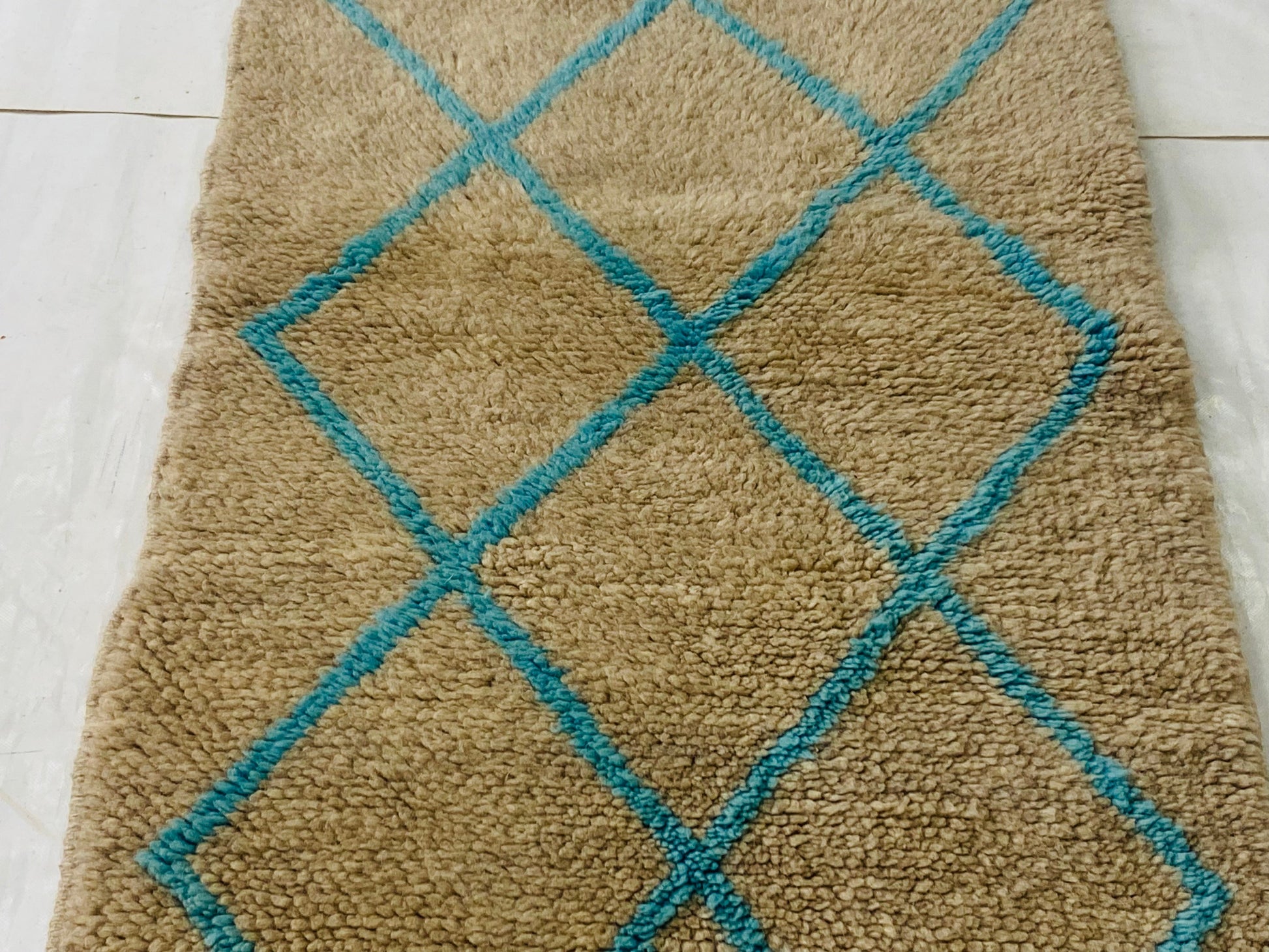 This Beni ourain rug is a Moroccan handmade rug, made between the middle Atlas and the Atlantic ocean of Morocco. Women in that region employed soft sheep wool and furnished it perfectly with wide diamonds shapes and tiny perfect details.