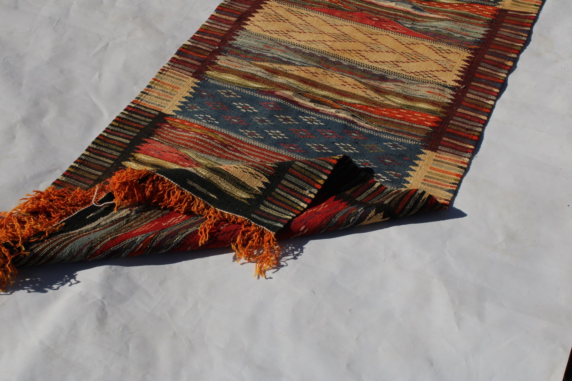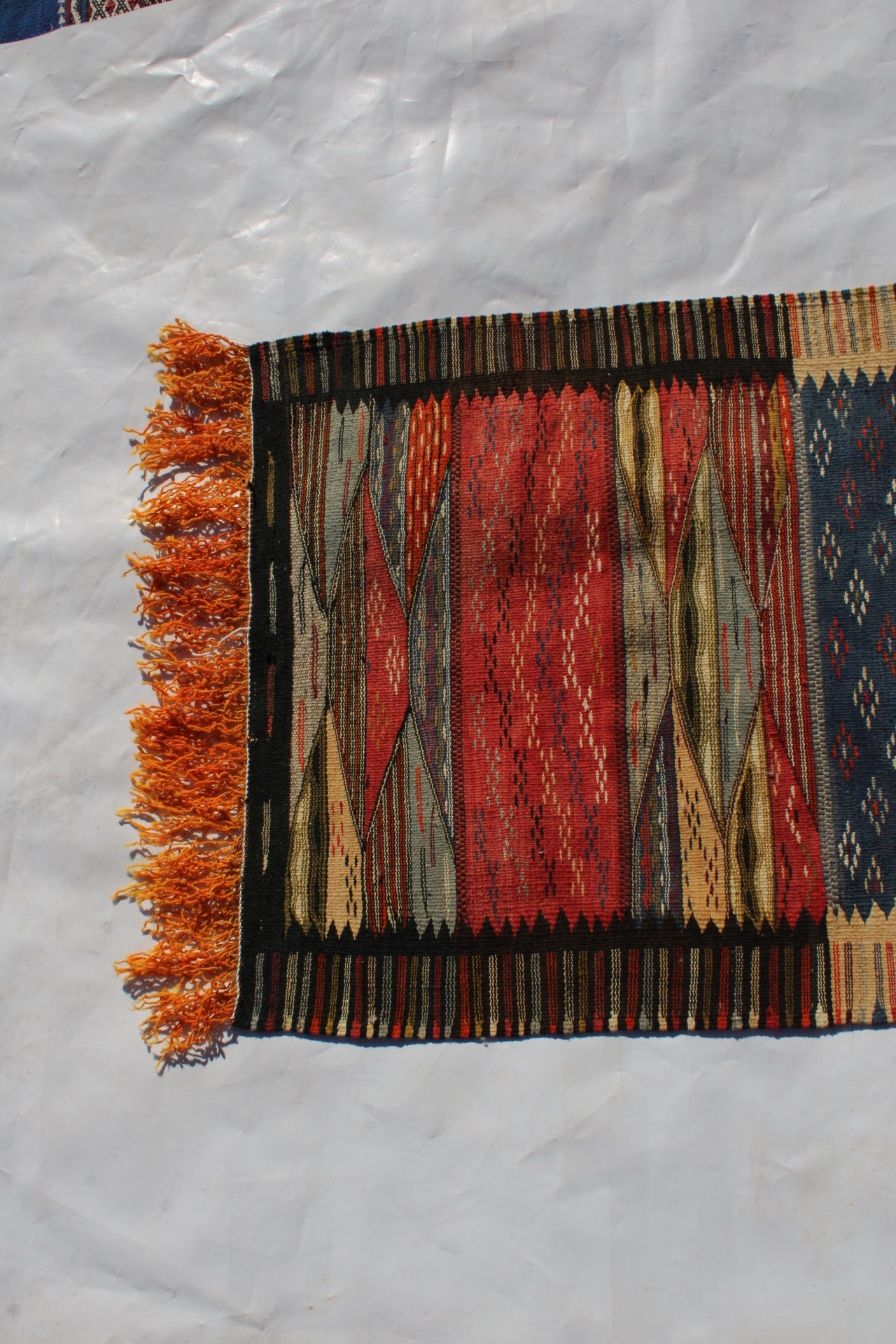 Picasso Berber kilim, Alfombra marroquí tejida a mano, Alfombra bereber abstracta, (150x71 Cm)