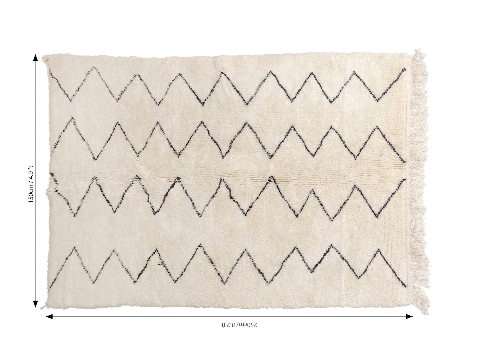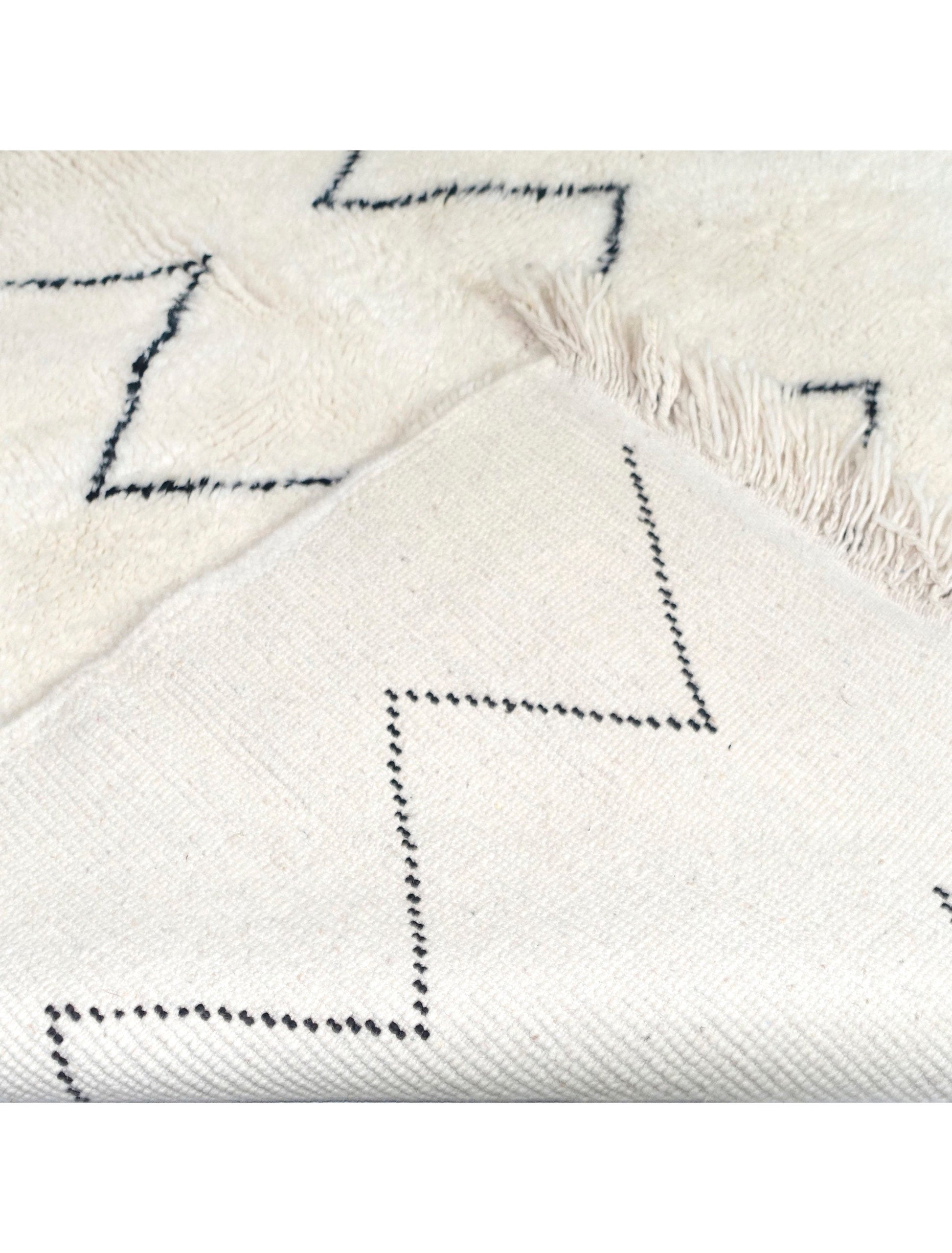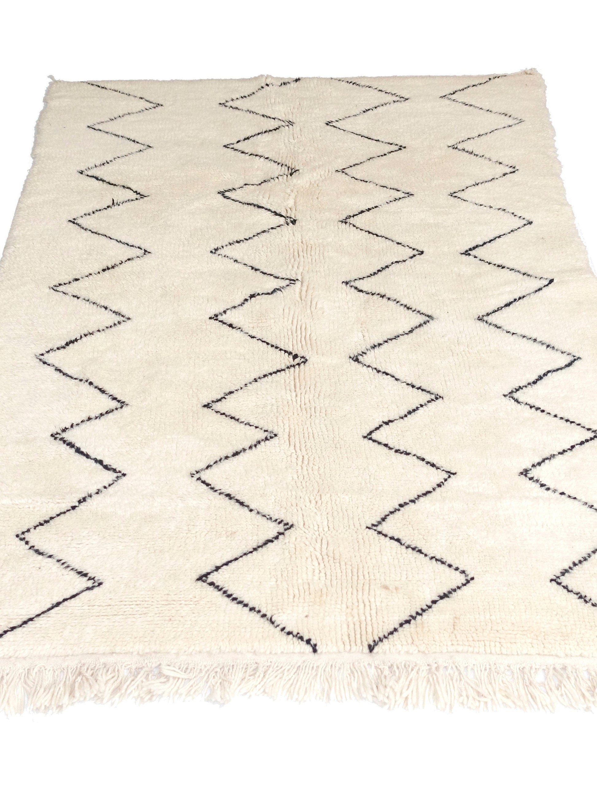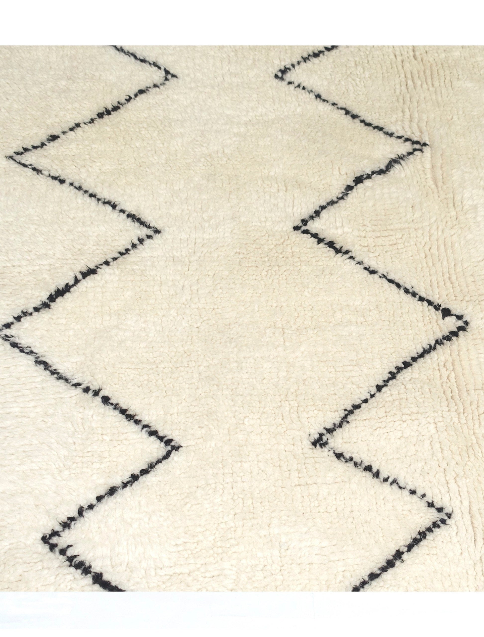 This Beni ourain rug is a Moroccan handmade rug, made between the middle Atlas and the Atlantic ocean of Morocco. Women in that region employed soft sheep wool and furnished it perfectly with wide diamonds shapes and tiny perfect details.