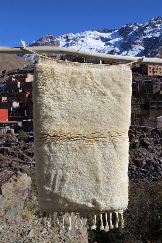 Authentic Beni Imlil Moroccan Rug – Thick Wool Ivory Carpet – Handmade in Atlas Mountains size 120x70 cm